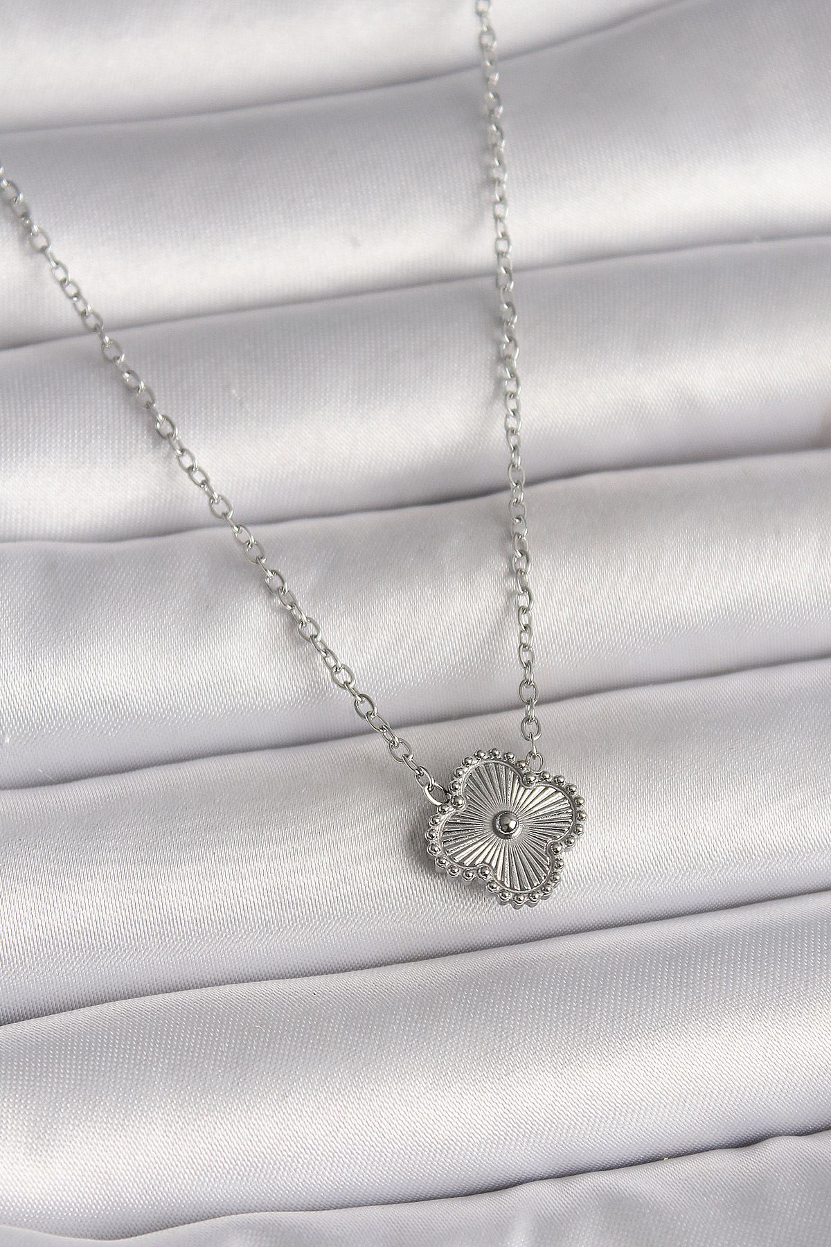 316L Çelik Gümüş Renk İşleme Detaylı Yonca Model Kadın Kolye - TJ-BKO10016