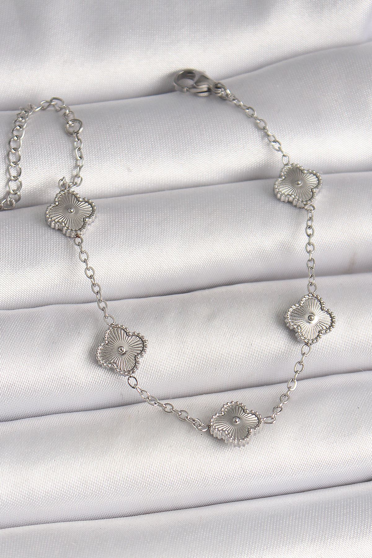 316L Çelik Gümüş Renk İşlemeli Yonca Model Kadın Bileklik - TJ-BB6927
