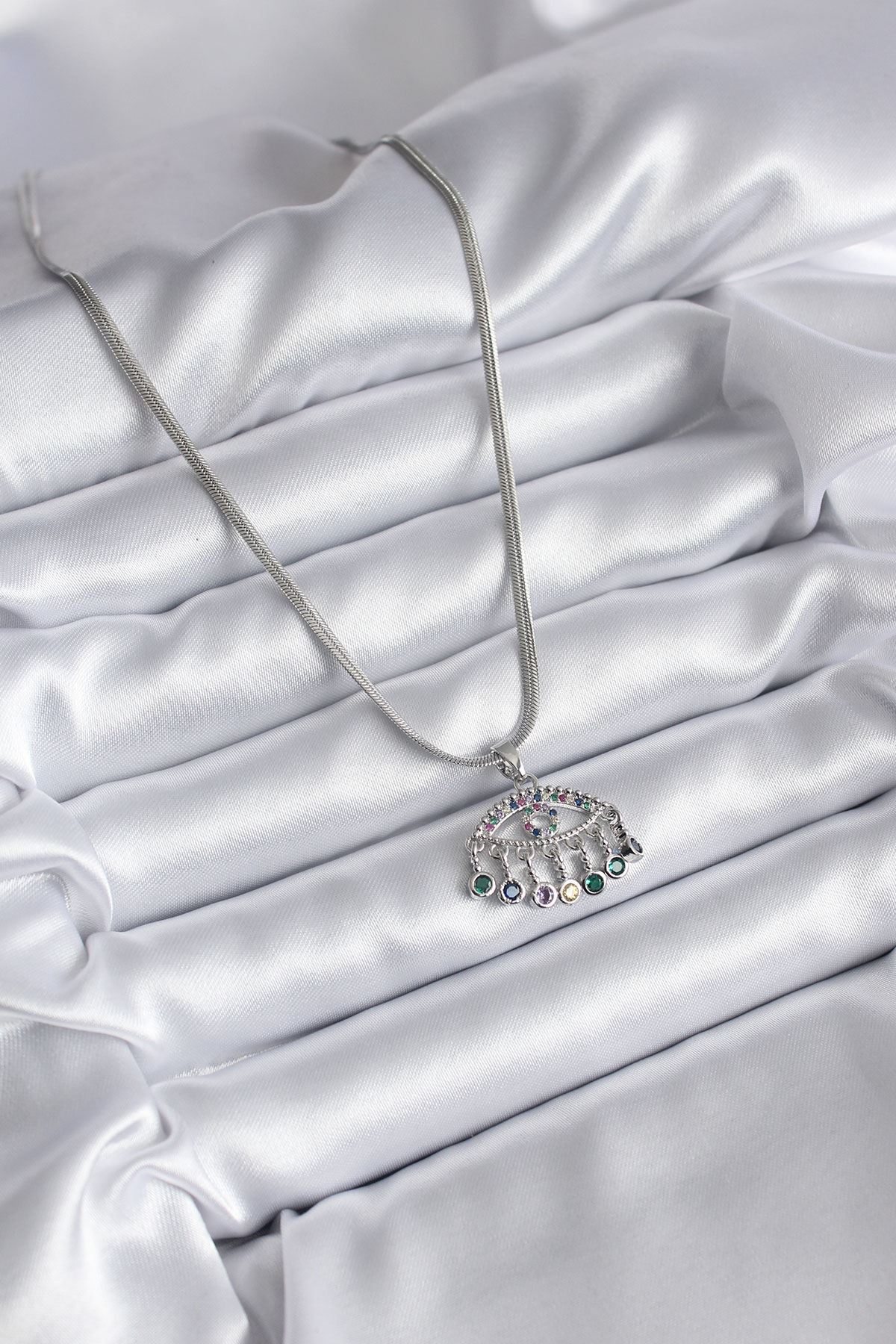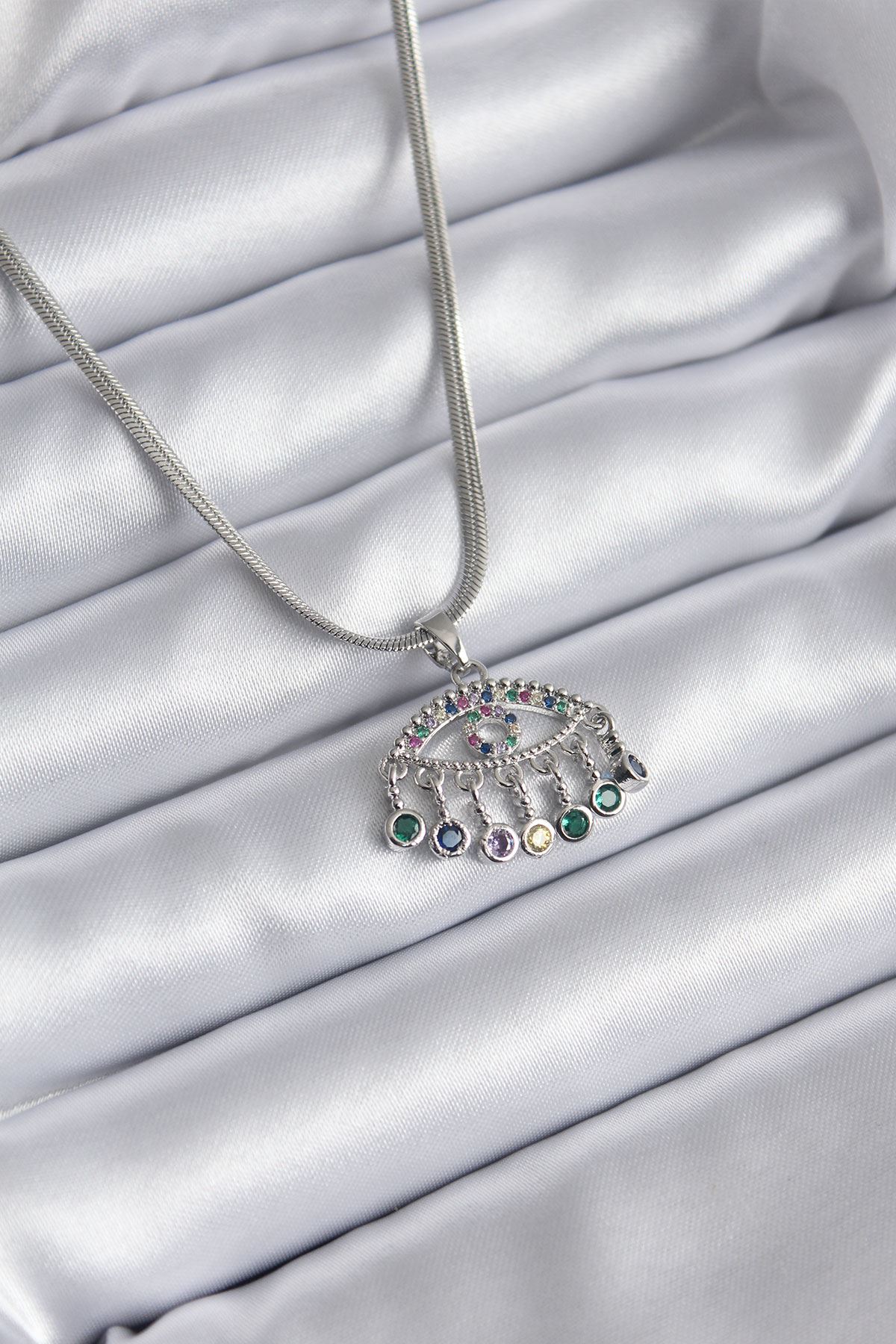 316L Çelik Gümüş Renk İtalyan Zincir Zirkon Taşlı Göz Figür Kadın Kolye - TJ-BKO8146