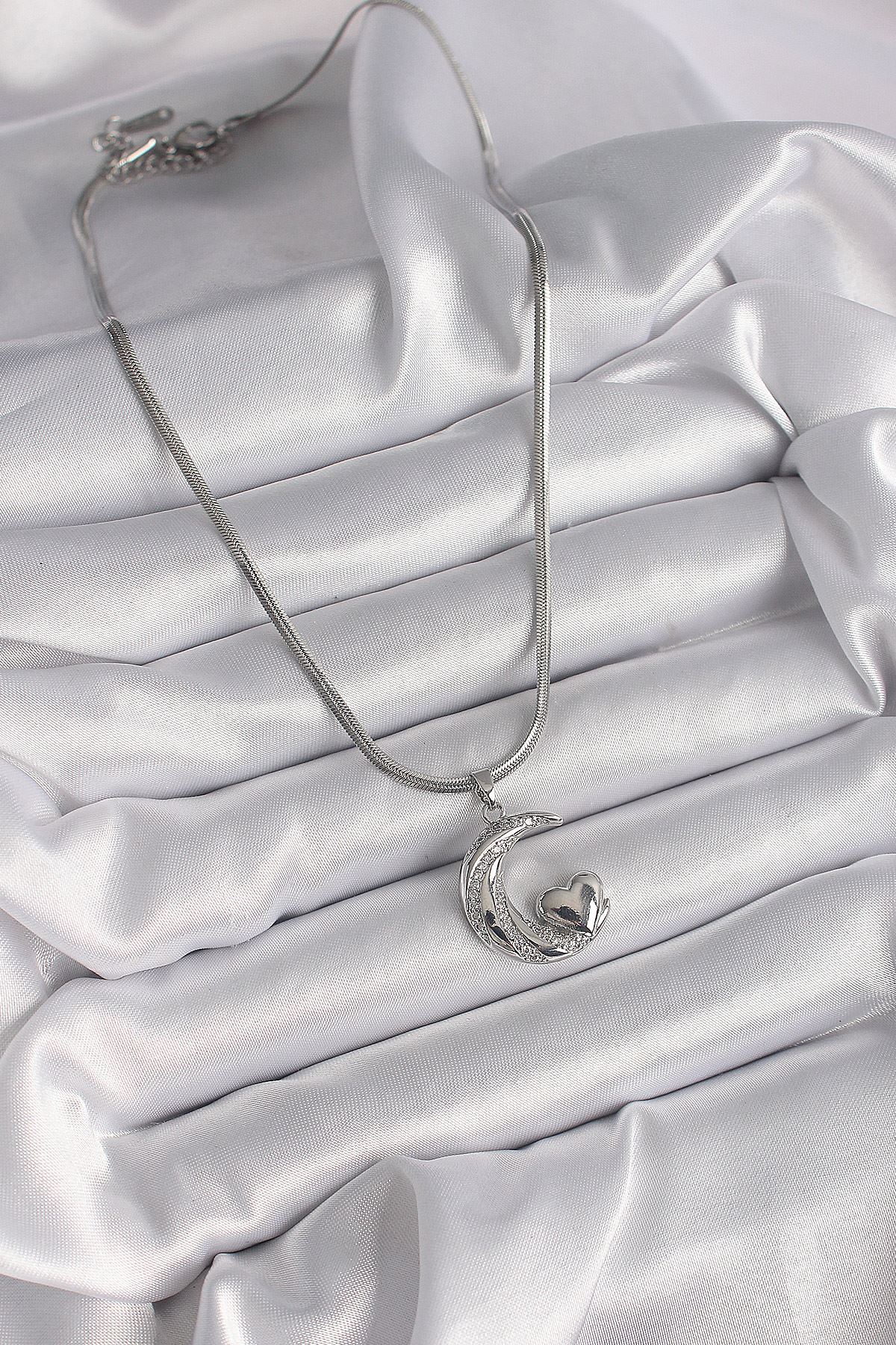 316L Çelik Gümüş Renk İtalyan Zincir Zirkon Taşlı Halil Figür Kalp Detay Kadın Kolye - TJ-BKO9590