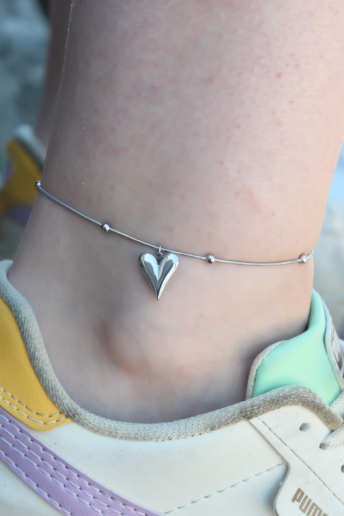 316L Çelik Gümüş Renk Kalp Figür Kadın Halhal - TJ-HH1492