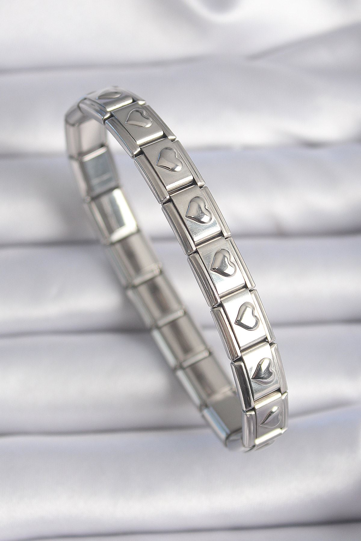 316L Çelik Gümüş Renk Kalp İşleme Nomination Model Kadın Bileklik - TJ-BB6461