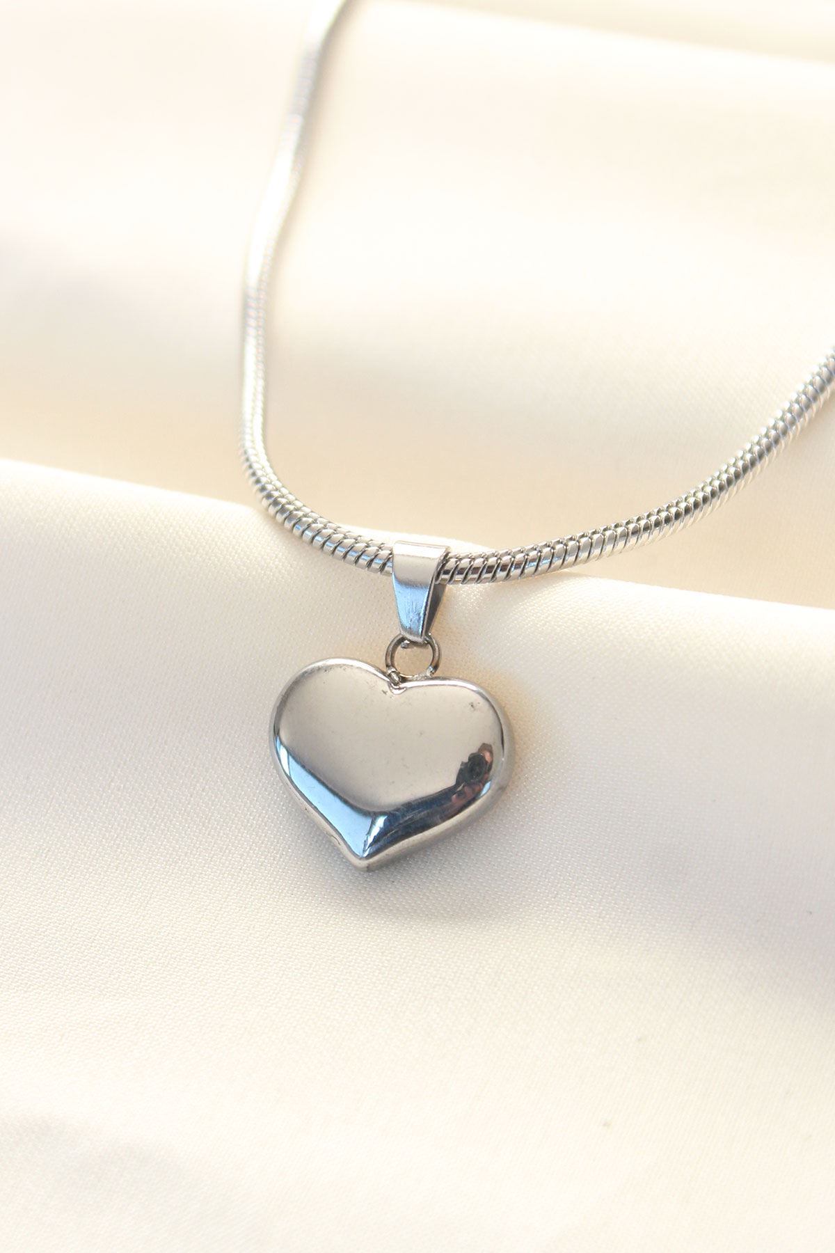 316L Çelik Gümüş Renk Kalp Kolye - TJ-BKO8509