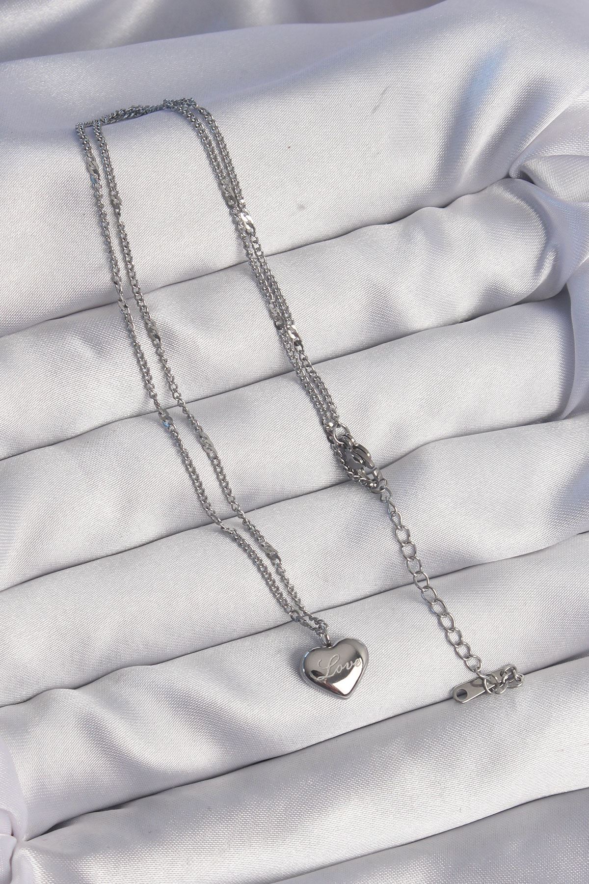 316L Çelik Gümüş Renk Kalp Model Love Kolye - TJ-BKO8932