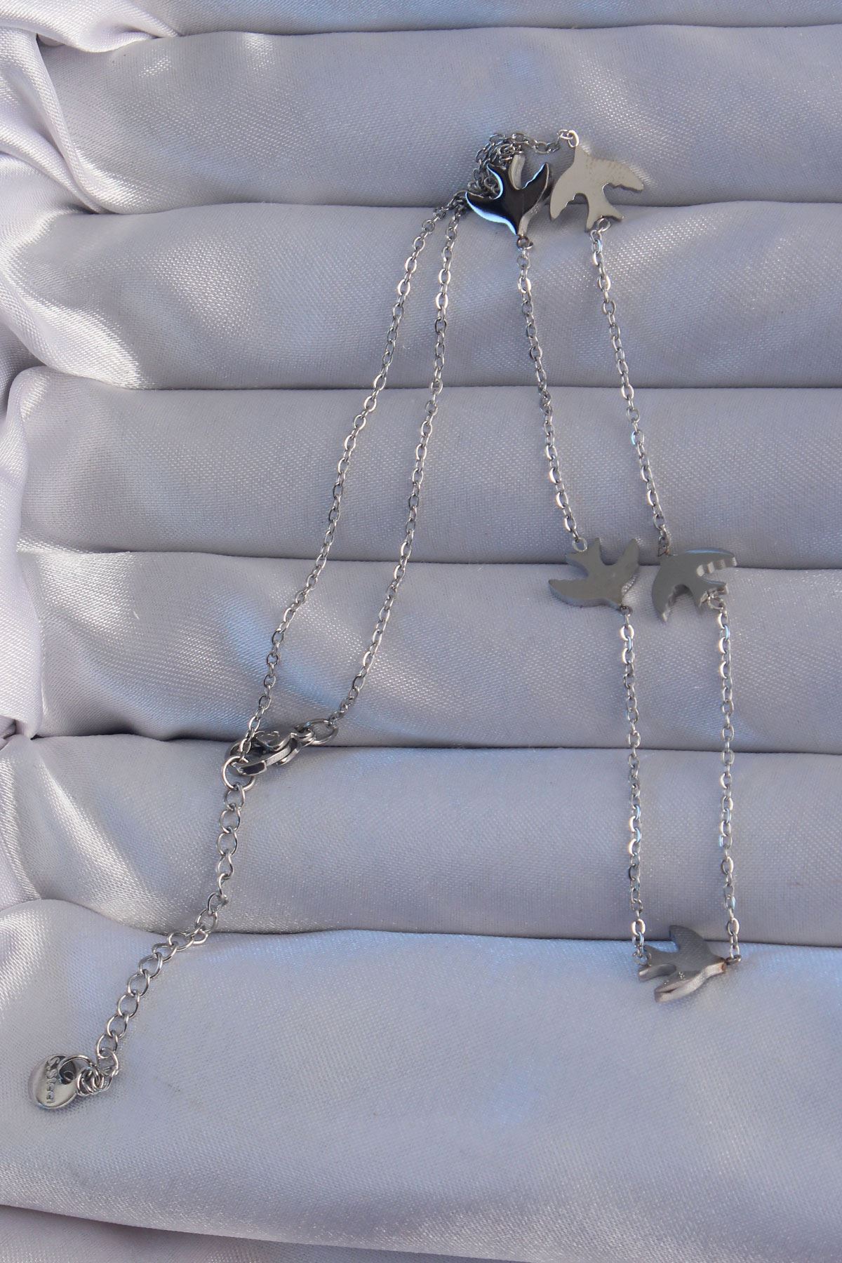 316L Çelik Gümüş Renk Kuş Model Kolye - TJ-BKO8942