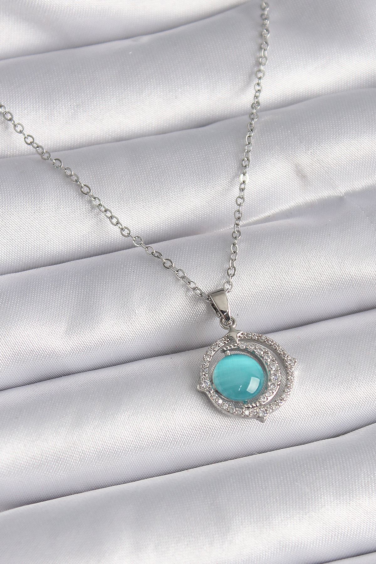 316L Çelik Gümüş Renk Mavi Sedefli Hilal Model Kadın Kolye - TJ-BKO9409