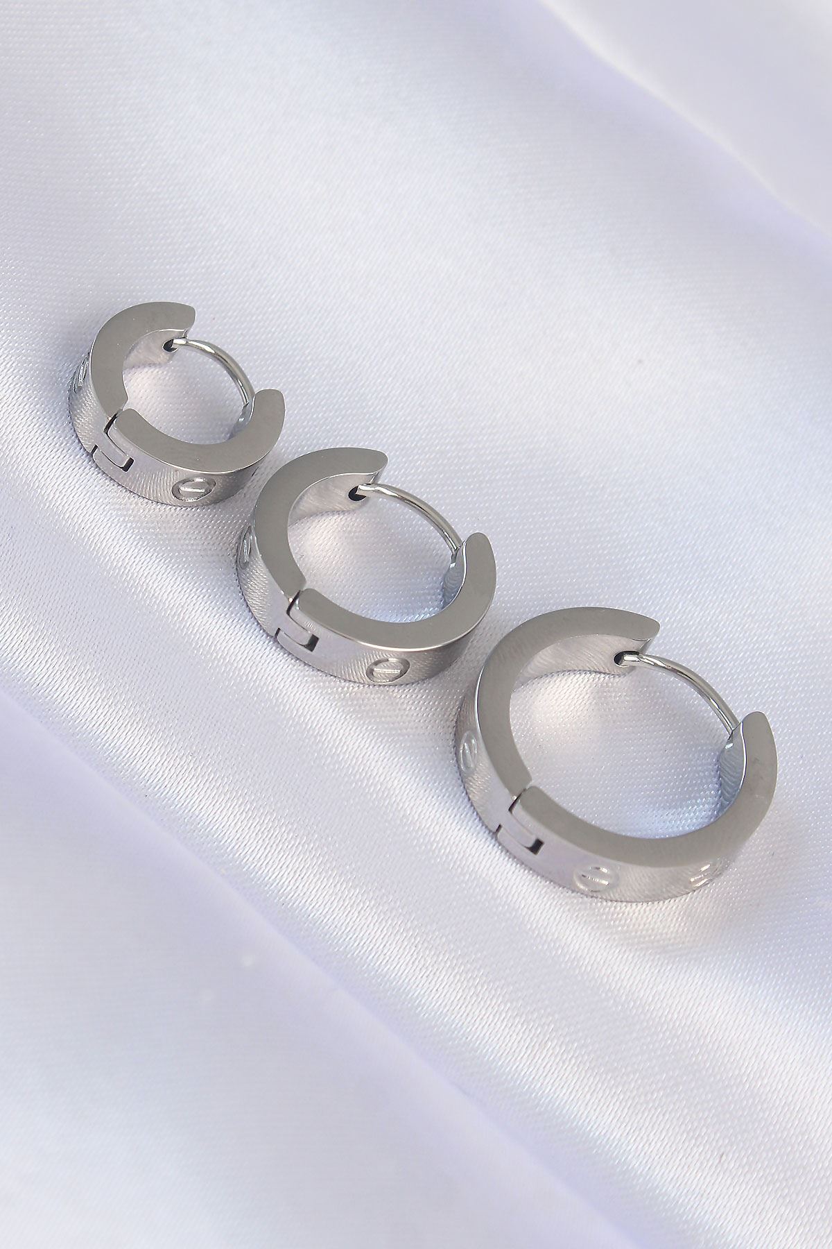 316L Çelik Gümüş Renk Model 3lü Halka Küpe - TJ-BKP9010