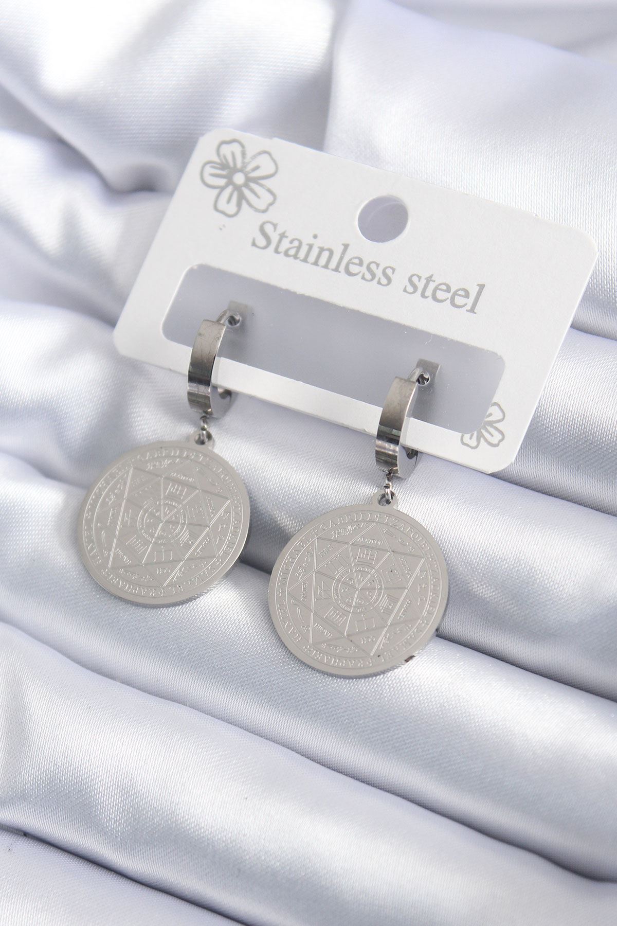 316L Çelik Gümüş Renk Pentagram İşleme Model Kadın Küpe - TJ-BKP7924
