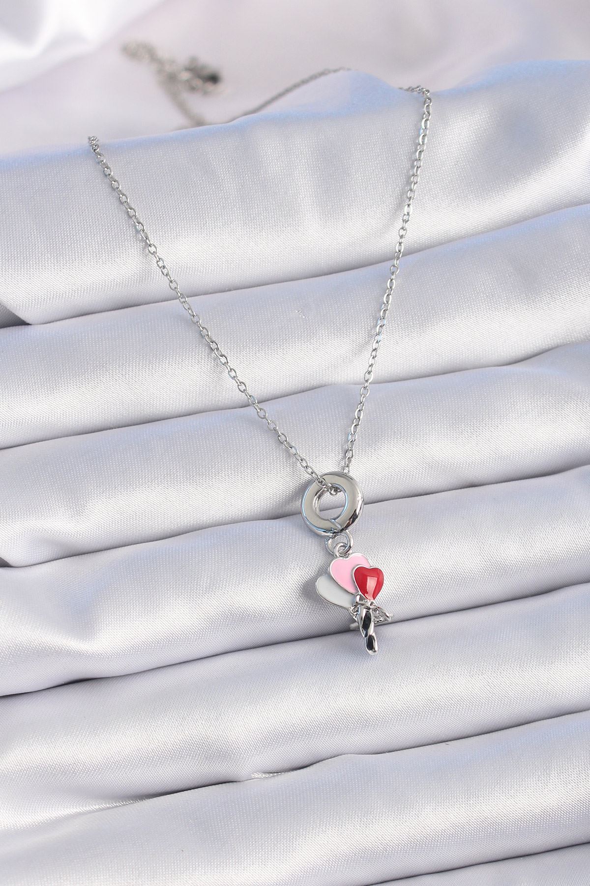 316L Çelik Gümüş Renk Renkli Kalp Figür Charm Model Kadın Kolye - TJ-BKO9319
