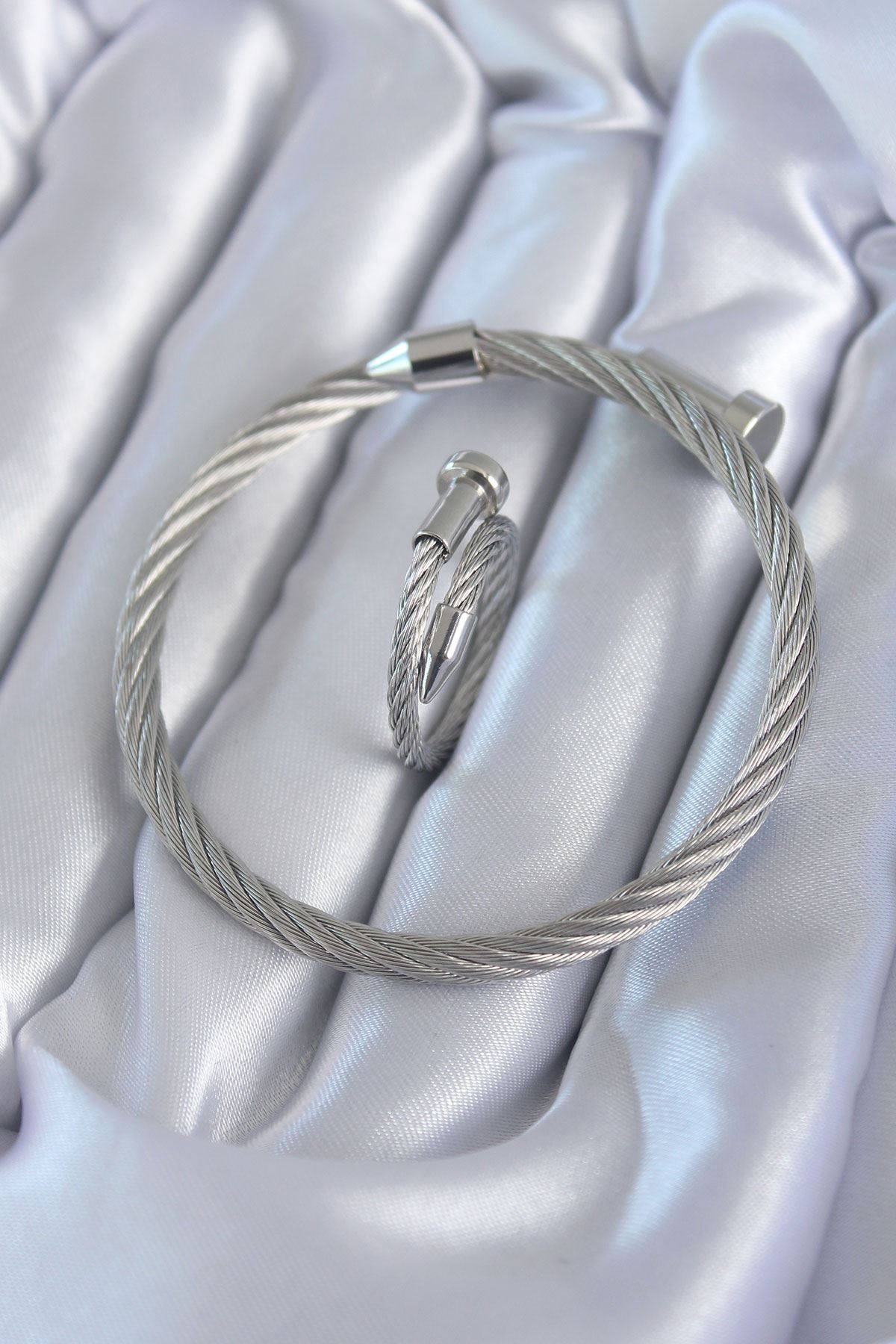 316L Çelik Gümüş Renk Sarmal Model Erkek Bileklik Yüzük Kombini - TJ-EB3599