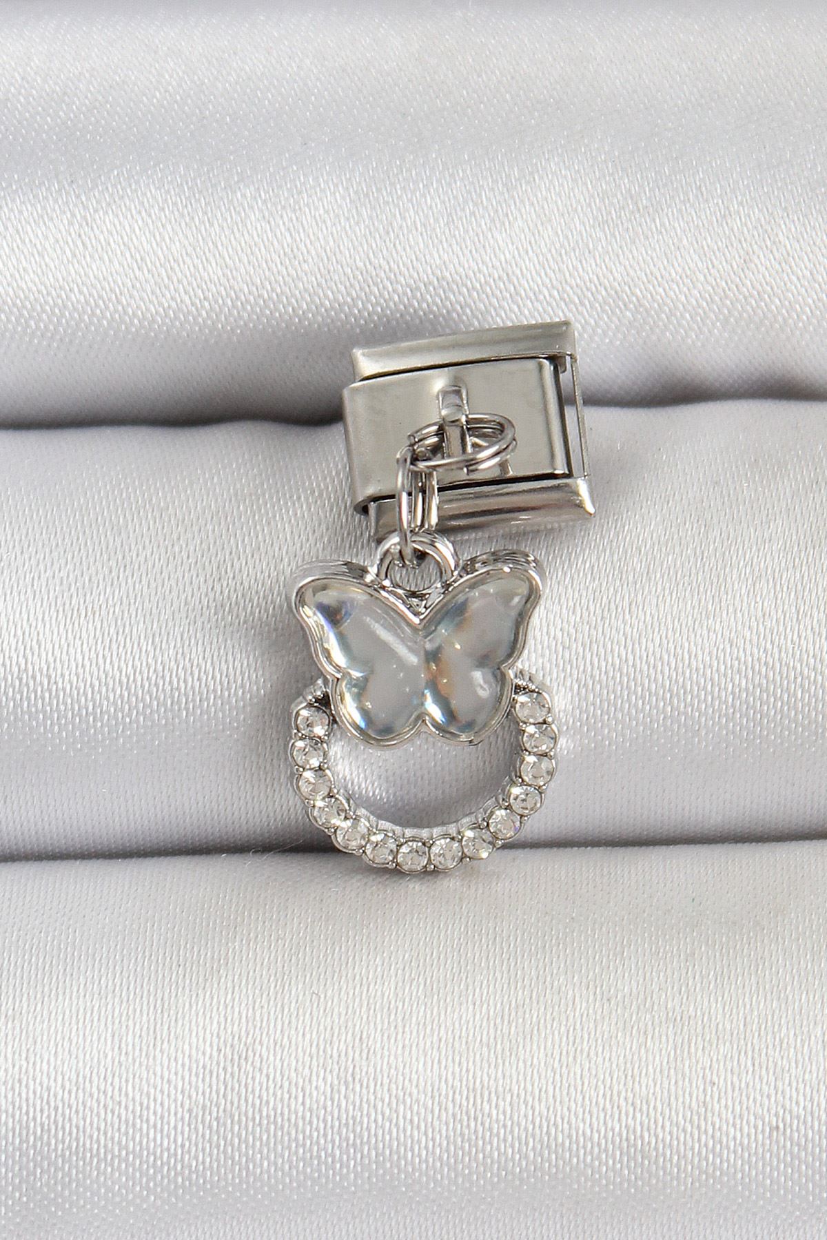 316L Çelik Gümüş Renk Taşlı Kelebek Model Nomination Charm - TJ-BC1504