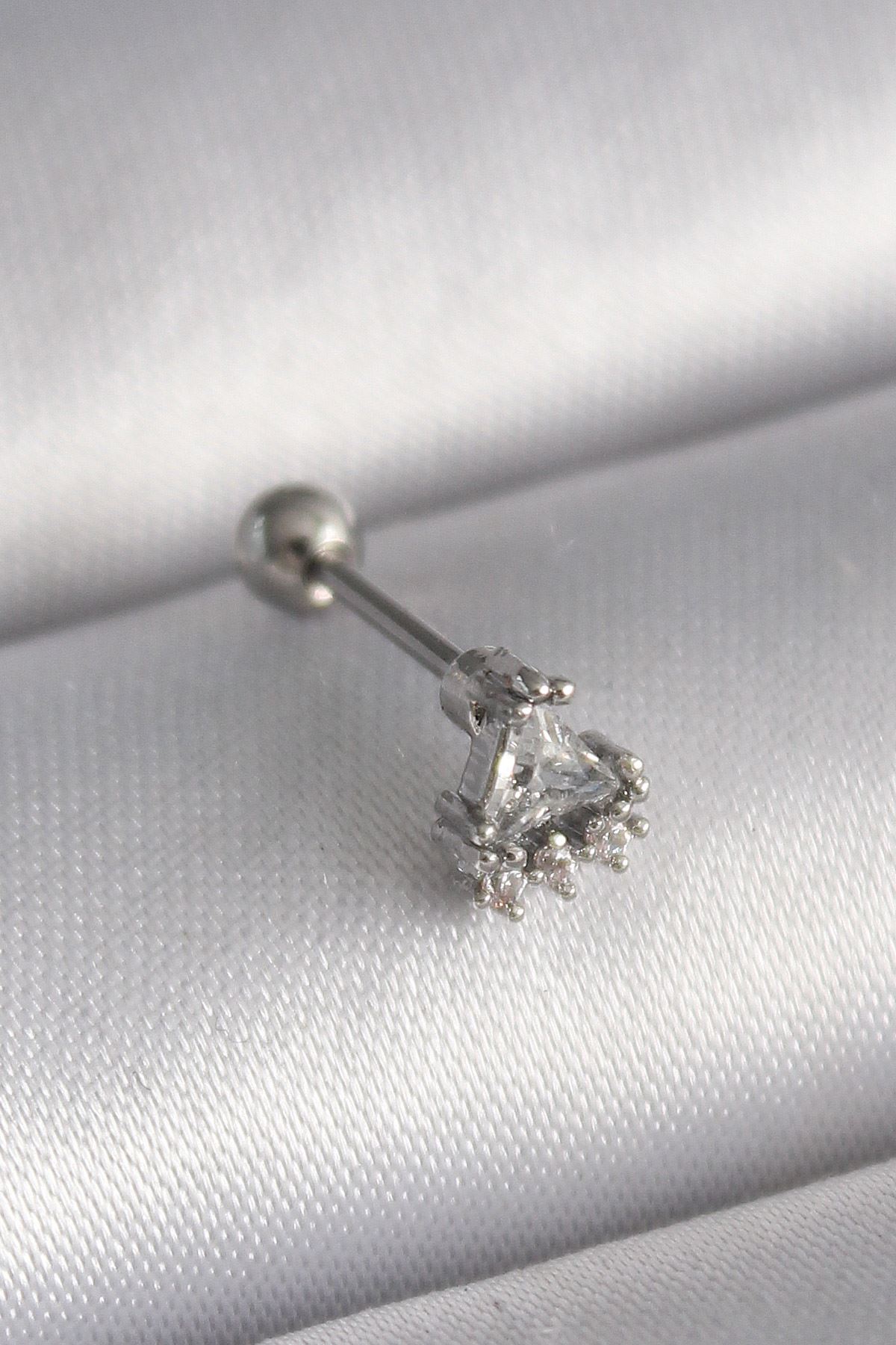 316L Çelik Gümüş Renk Üçgen Zirkon Taşlı Tragus Piercing - TJ-PR1239