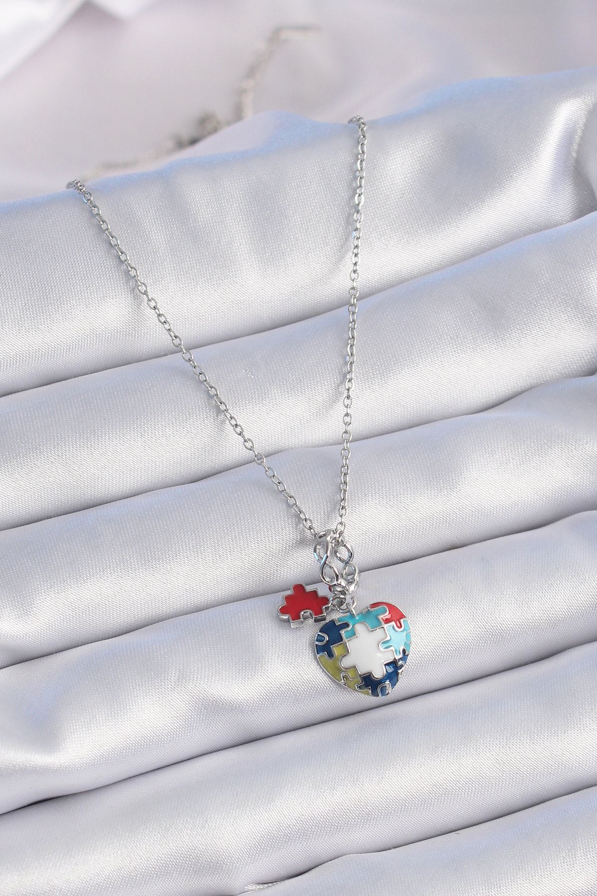 316L Çelik Gümüş Renk Yapboz Motif Kalp Figür Charm Model Kadın Kolye - TJ-BKO9315