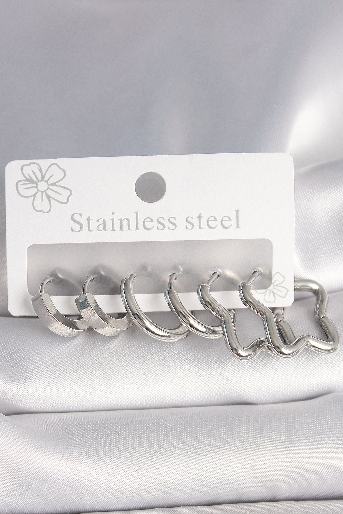316L Çelik Gümüş Renk Yarım Halka Yıldız Model Kadın Küpe Seti - TJ-BKP10384