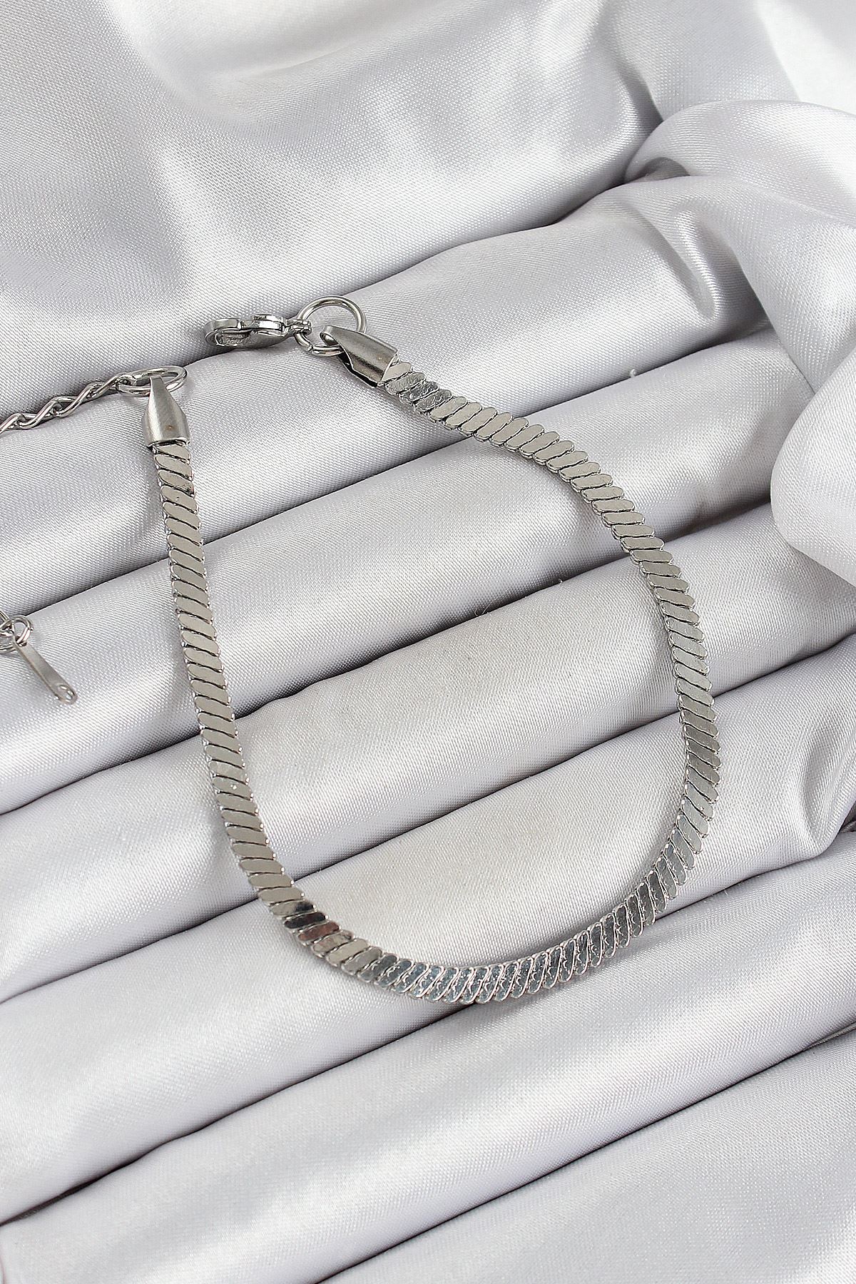 316L Çelik Gümüş Renk Yassı Zincir Model Kadın Bileklik - TJ-BB7085