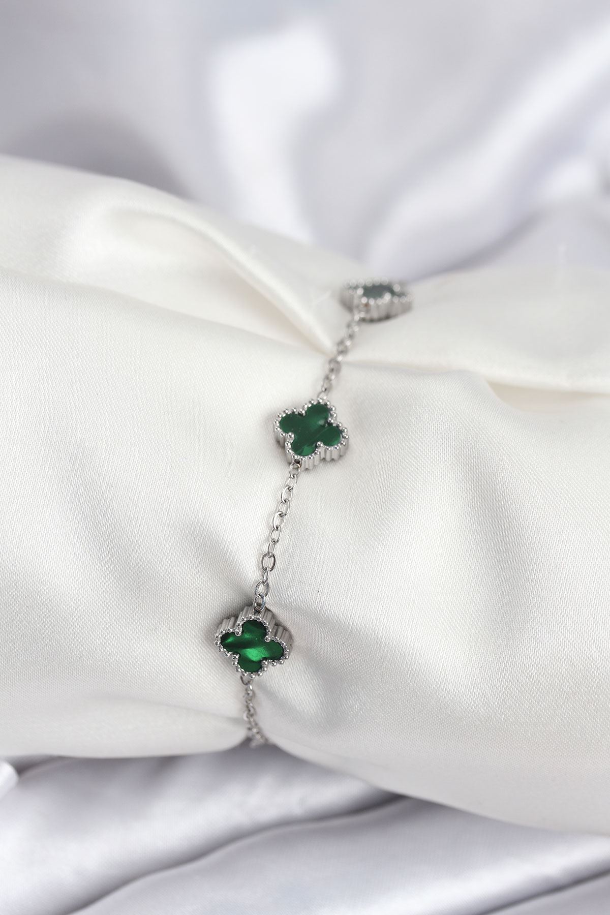 316L Çelik Gümüş Renk Yeşil Baby Boy Yonca Kadın Bileklik - TJ-BB7945