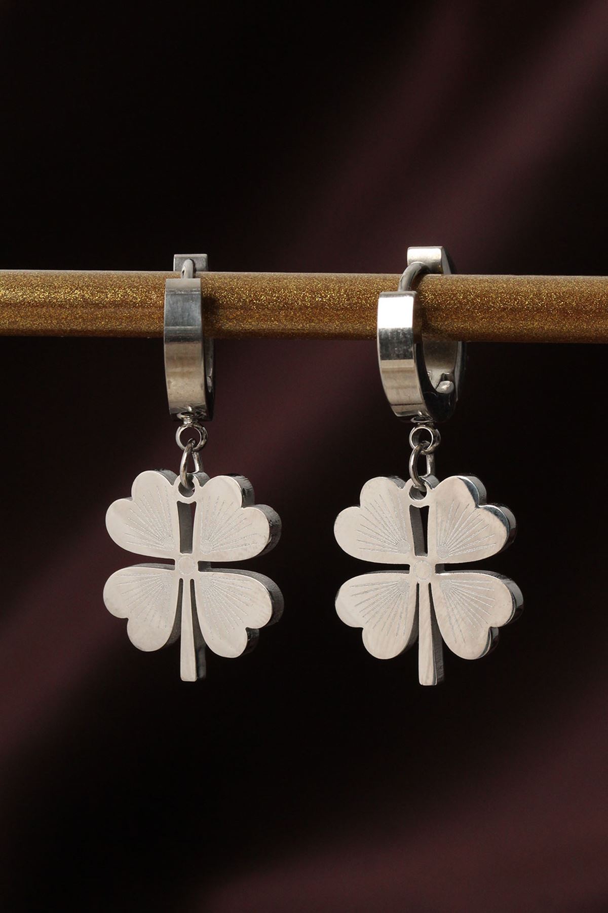 316L Çelik Gümüş Renk Yonca Küpe - TJ-BKP6328