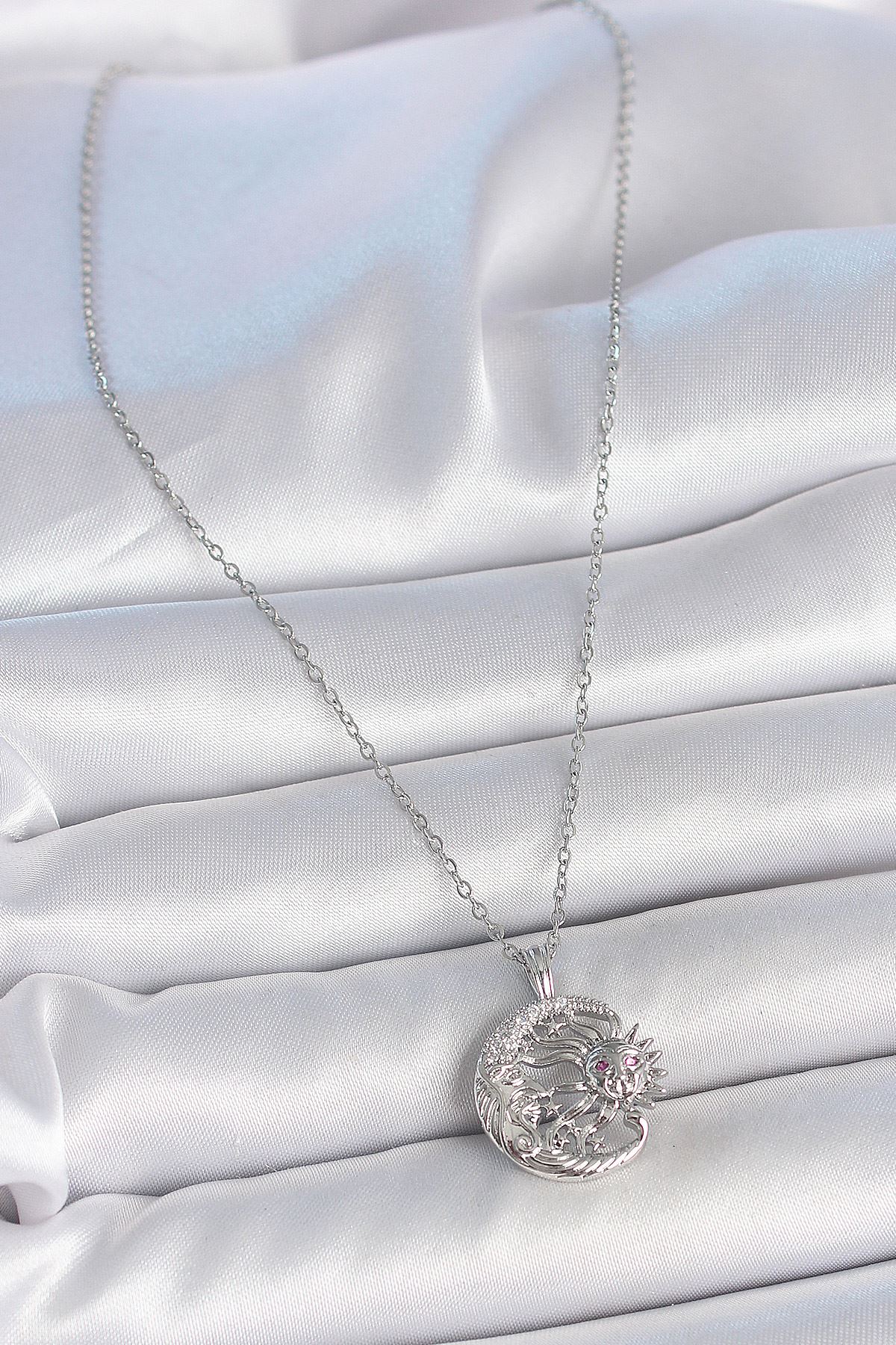 316L Çelik Gümüş Renk Zincir Ay Güneş Model Zirkon Taş Detay Kadın Kolye - TJ-BKO10056