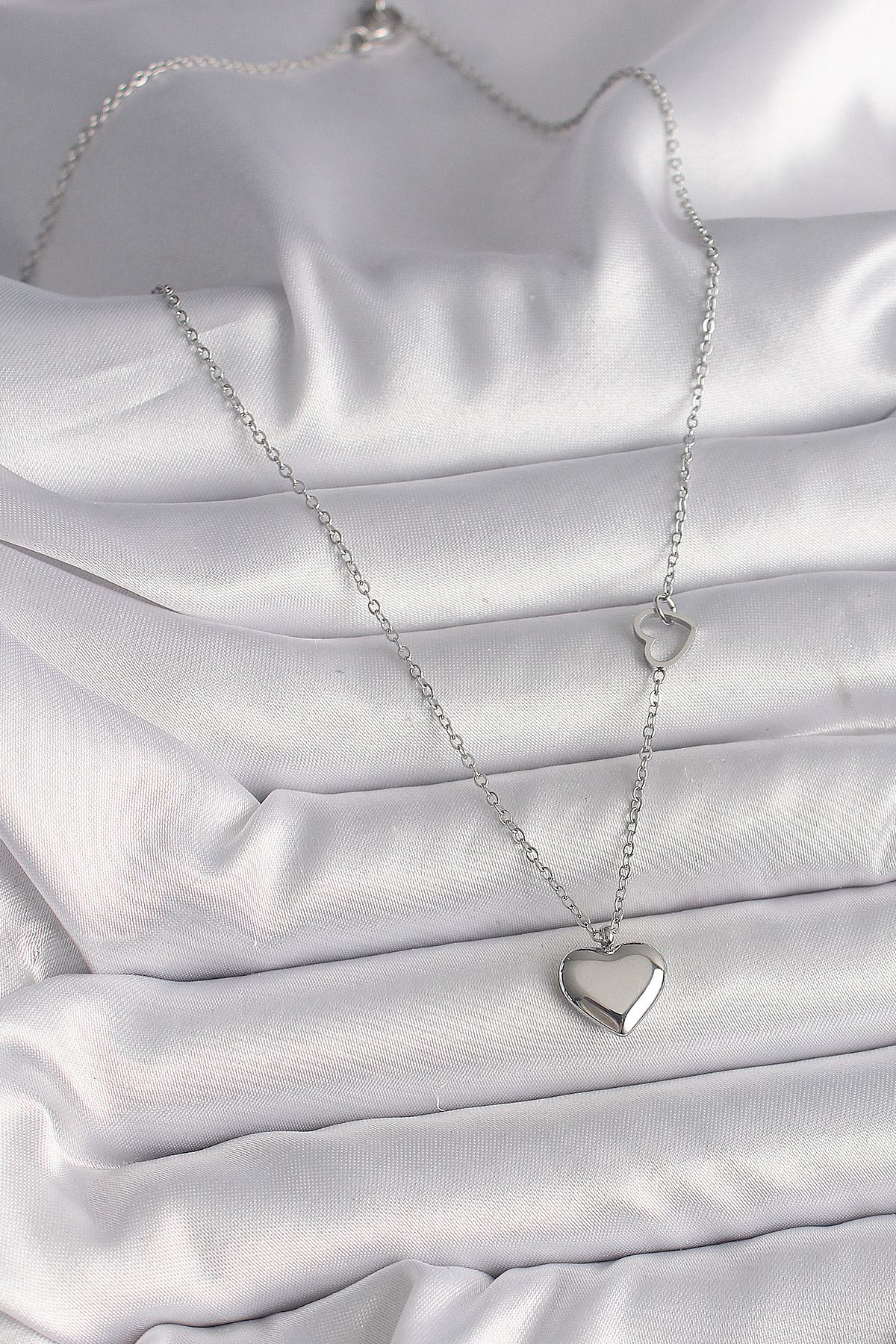 316L Çelik Gümüş Renk Zincir Kalp Detay Kalp Figür Kadın Kolye - TJ-BKO9775
