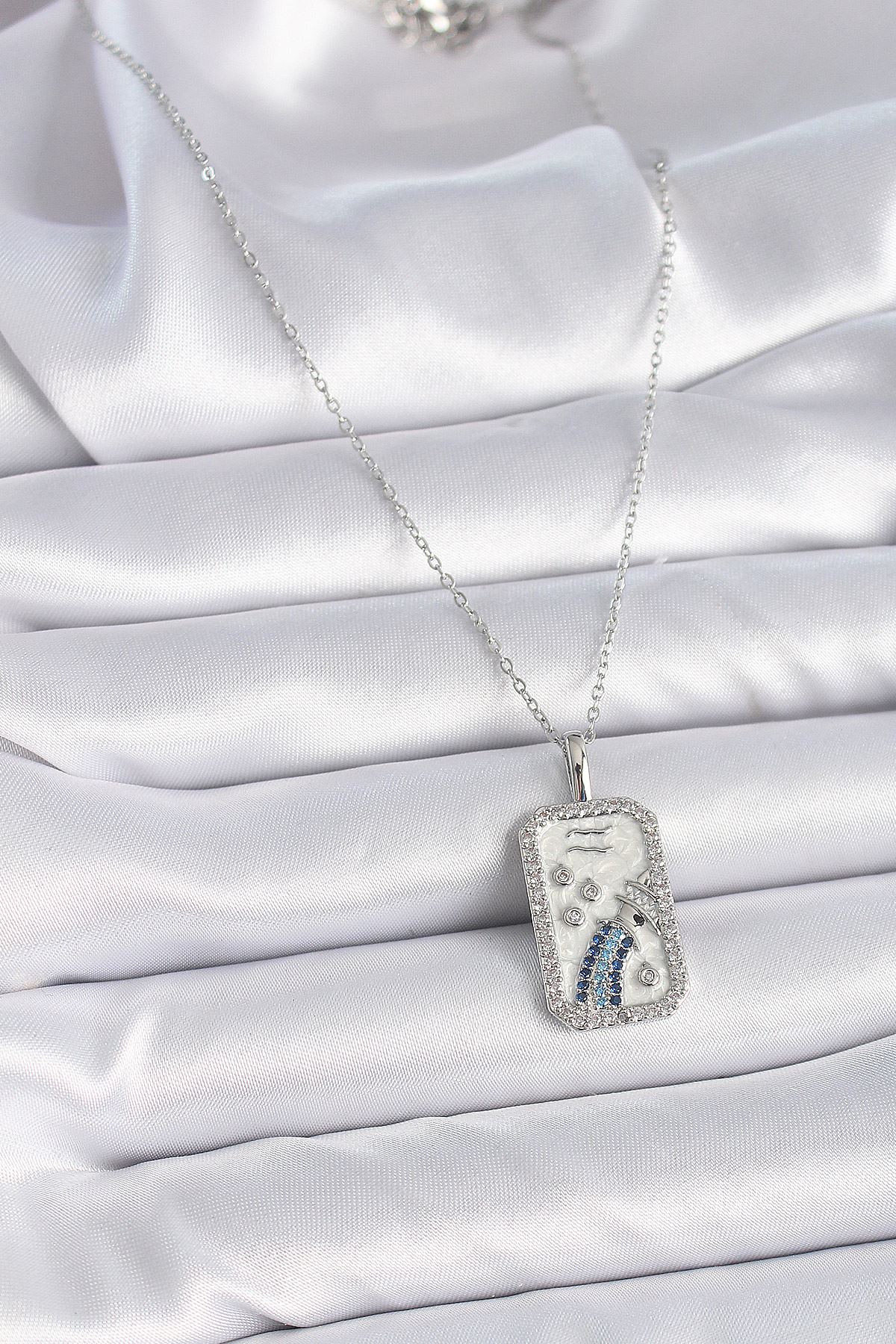 316L Çelik Gümüş Renk Zincir Kova Burcu Zirkon Taşlı Kadın Kolye - TJ-BKO9447