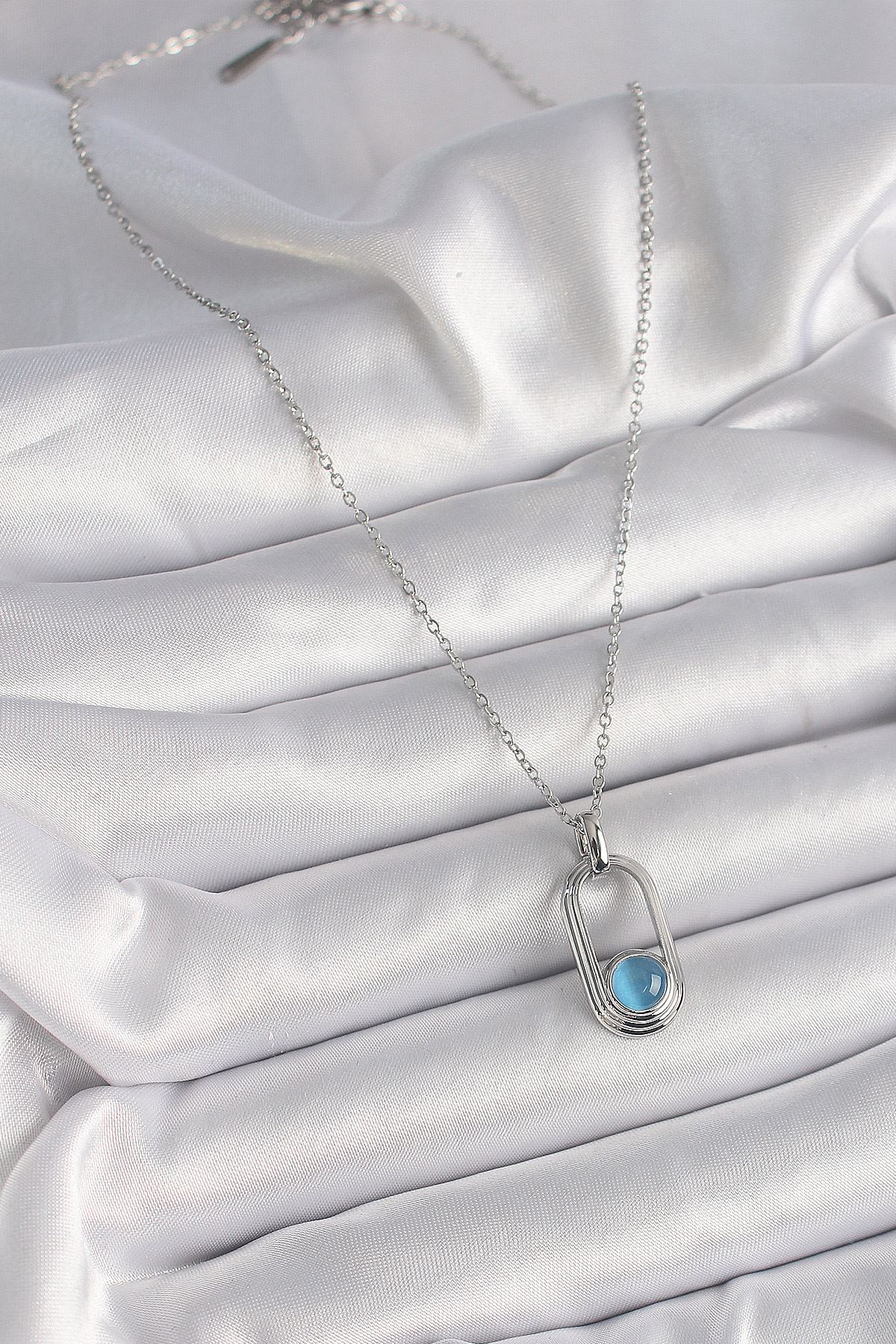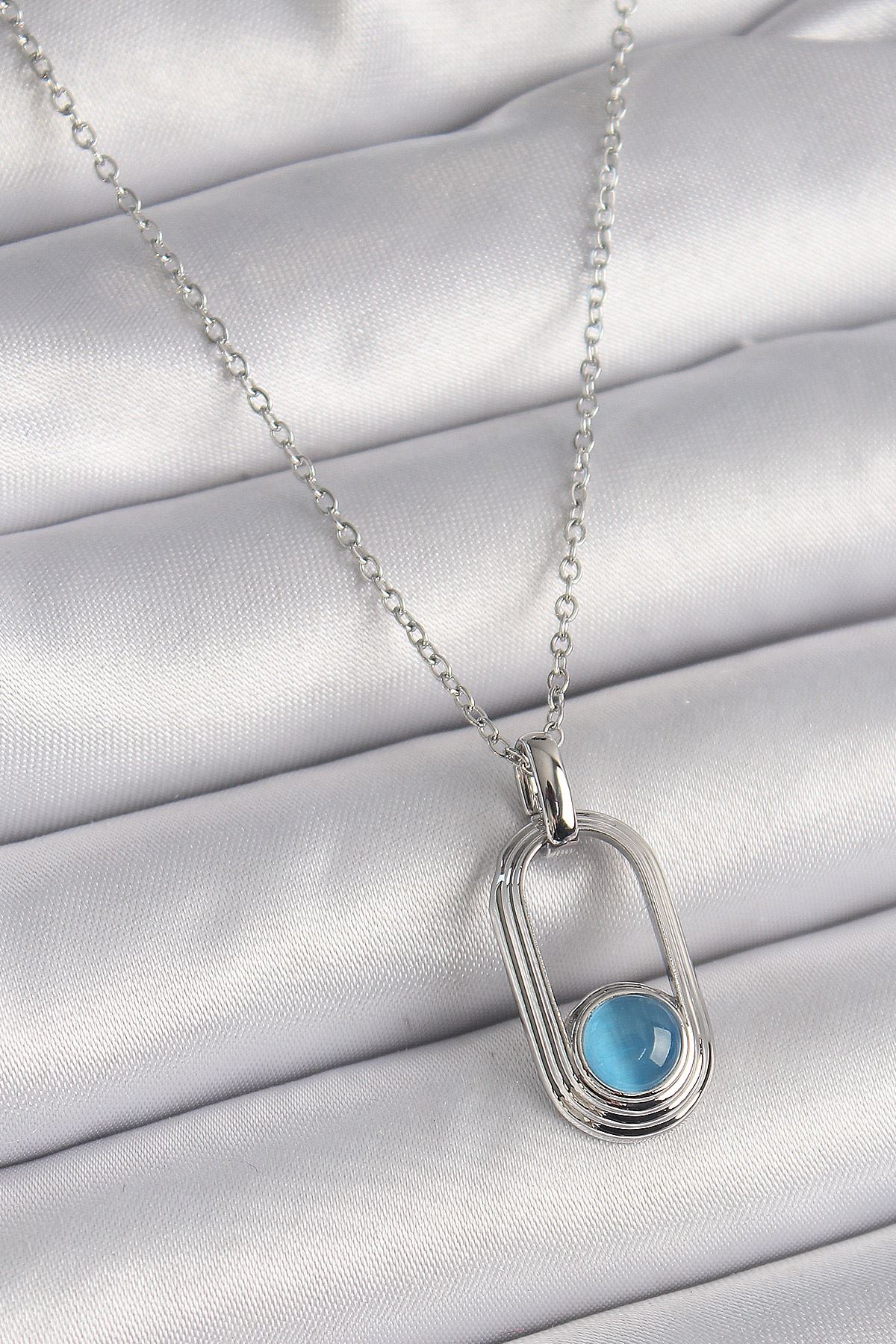 316L Çelik Gümüş Renk Zincir Mavi Kedi Göz Model Kadın Kolye - TJ-BKO9613