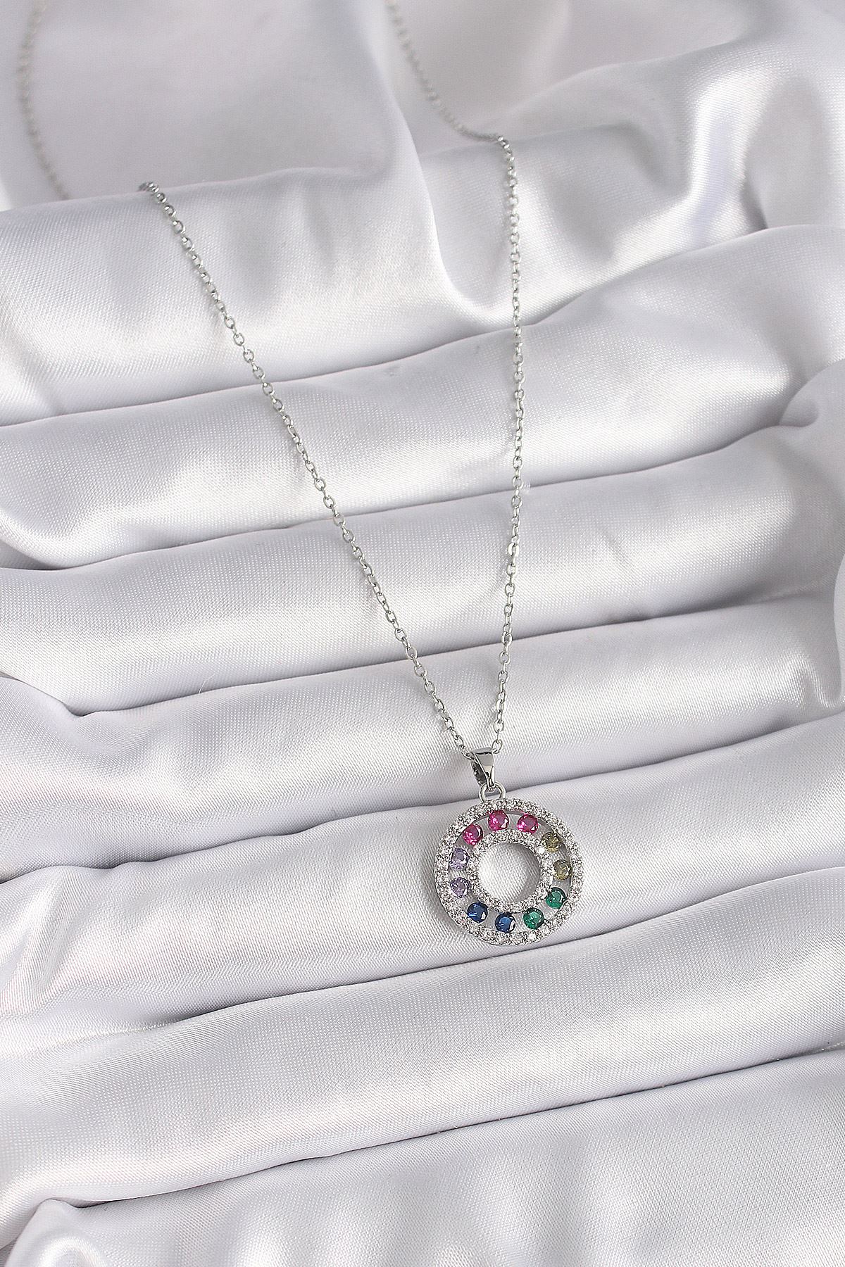 316L Çelik Gümüş Renk Zincir Renkli Zirkon Taşlı Madalyon Model Kadın Kolye - TJ-BKO9489