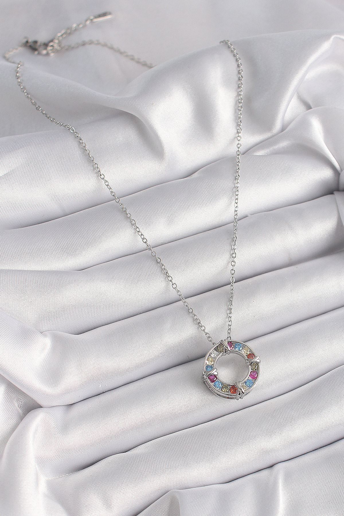316L Çelik Gümüş Renk Zincir Renkli Zirkon Taşlı Xoxo Model Kadın Kolye - TJ-BKO9629