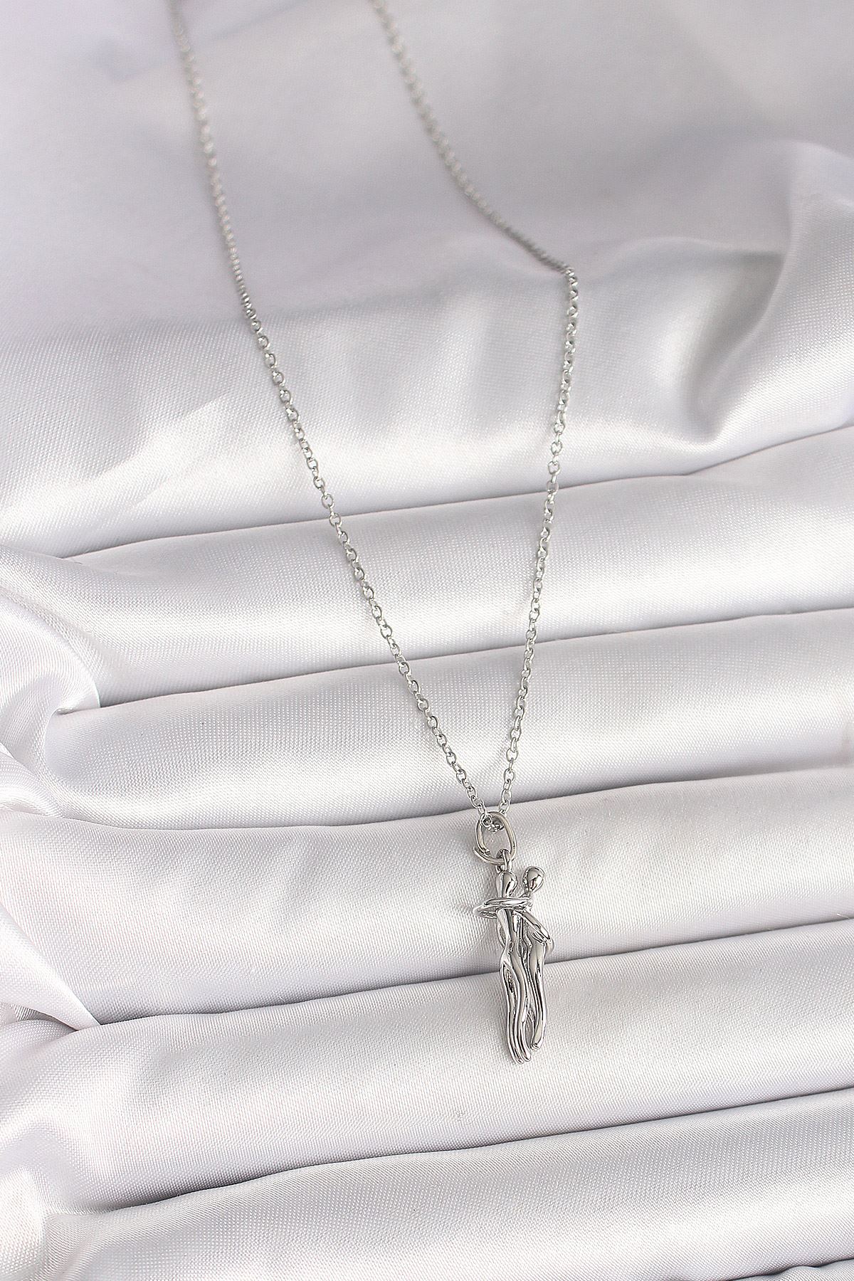 316L Çelik Gümüş Renk Zincir Sarılma Model Kadın Kolye - TJ-BKO9977