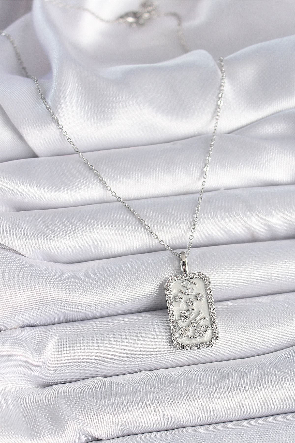 316L Çelik Gümüş Renk Zincir Yengeç Burcu Zirkon Taşlı Kadın Kolye - TJ-BKO9448