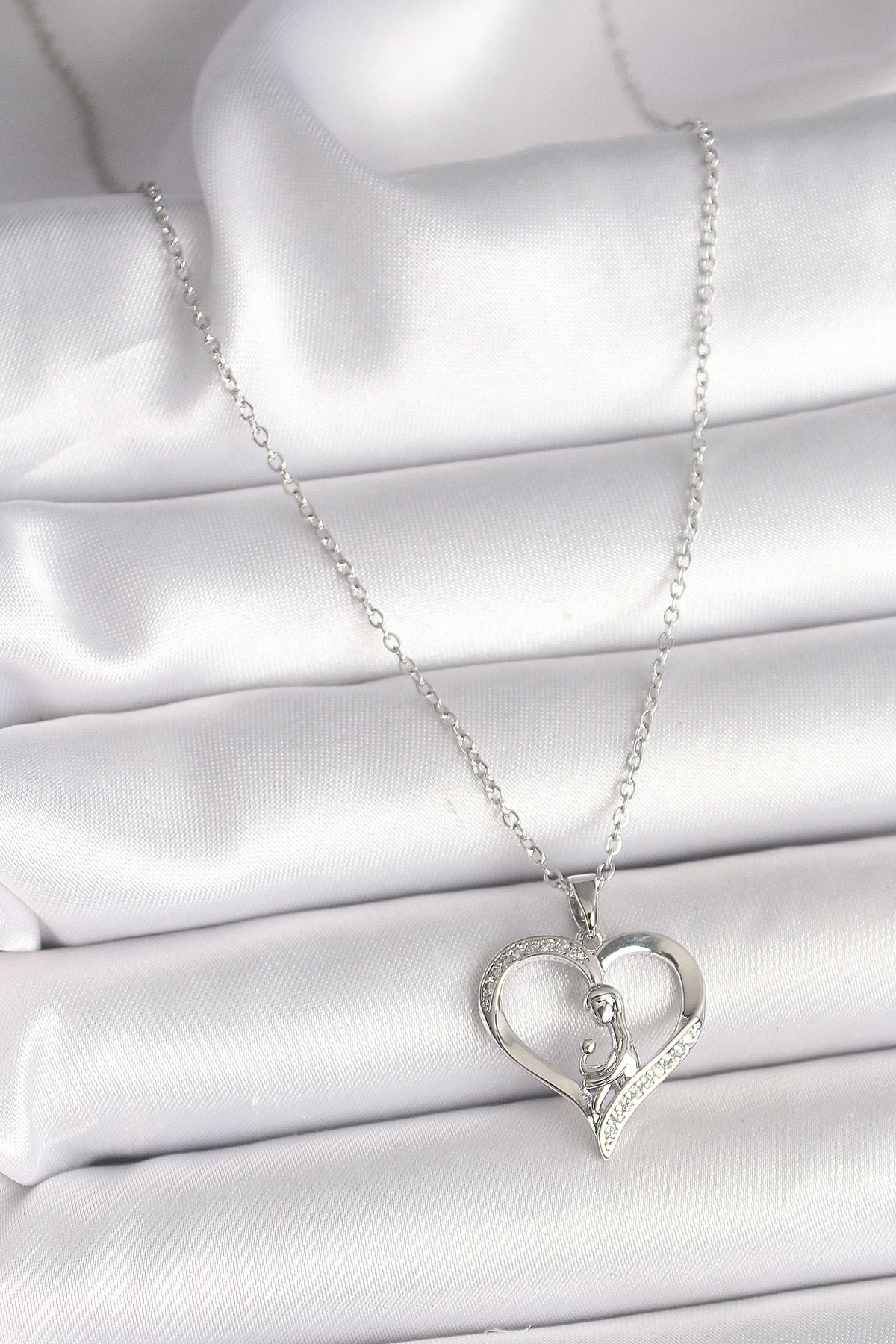 316L Çelik Gümüş Renk Zincir Zirkon Taş Detaylı Kalp Model Kadın Kolye - TJ-BKO9854