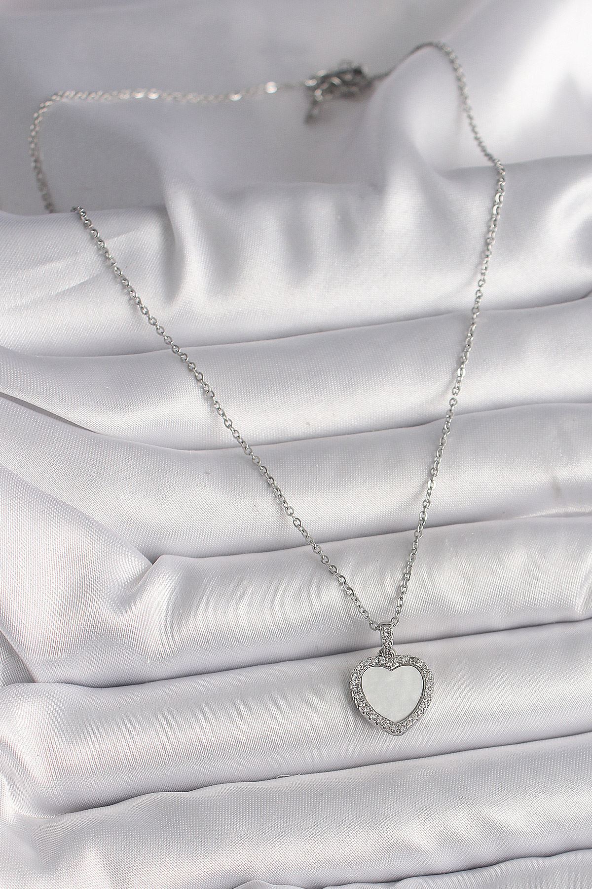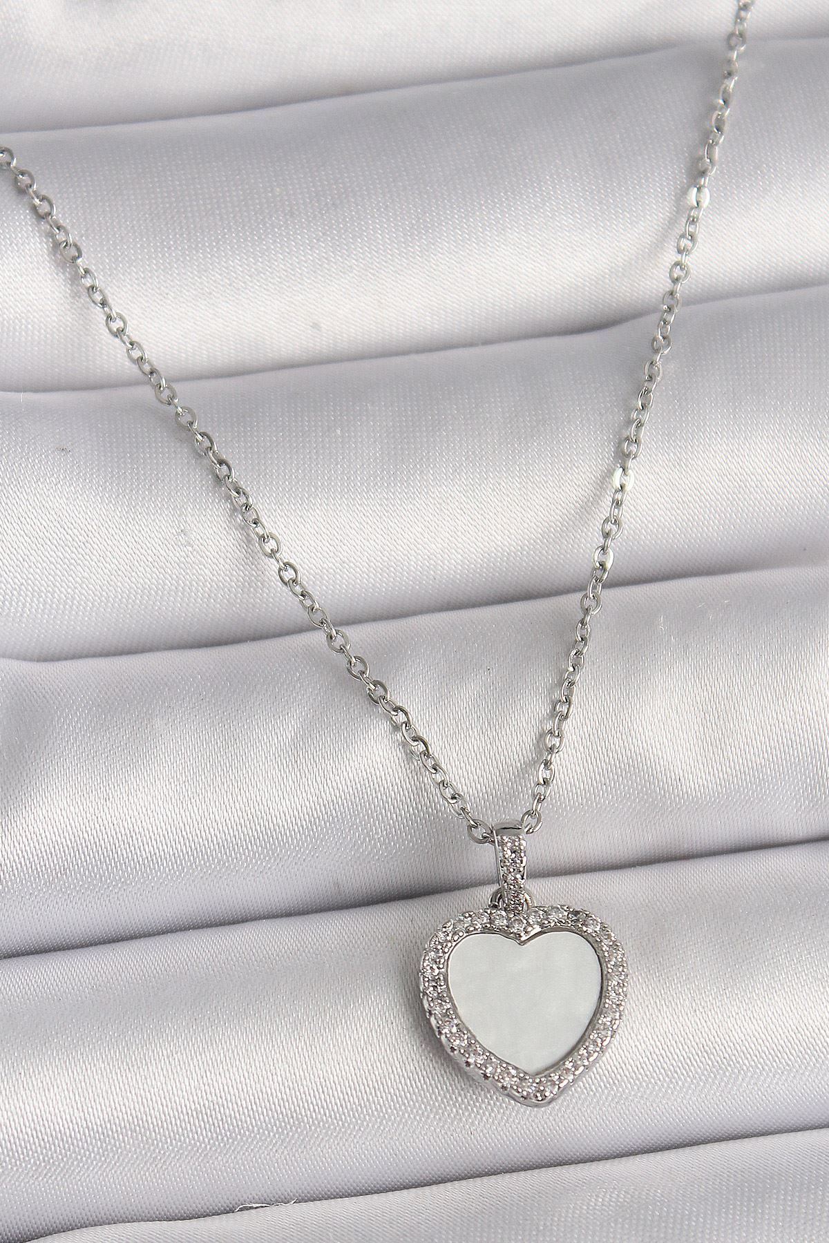 316L Çelik Gümüş Renk Zincir Zirkon Taşlı Beyaz Mineli Kalp Model Kadın Kolye - TJ-BKO9781