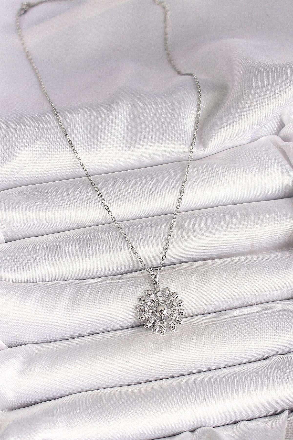 316L Çelik Gümüş Renk Zincir Zirkon Taşlı Güneş Model Kadın Kolye - TJ-BKO9967