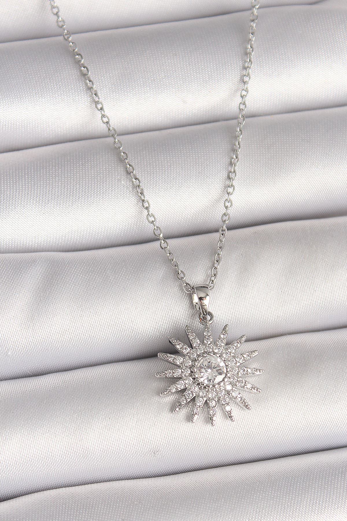 316L Çelik Gümüş Renk Zincir Zirkon Taşlı Güneş Model Kadın Kolye - TJ-BKO9979