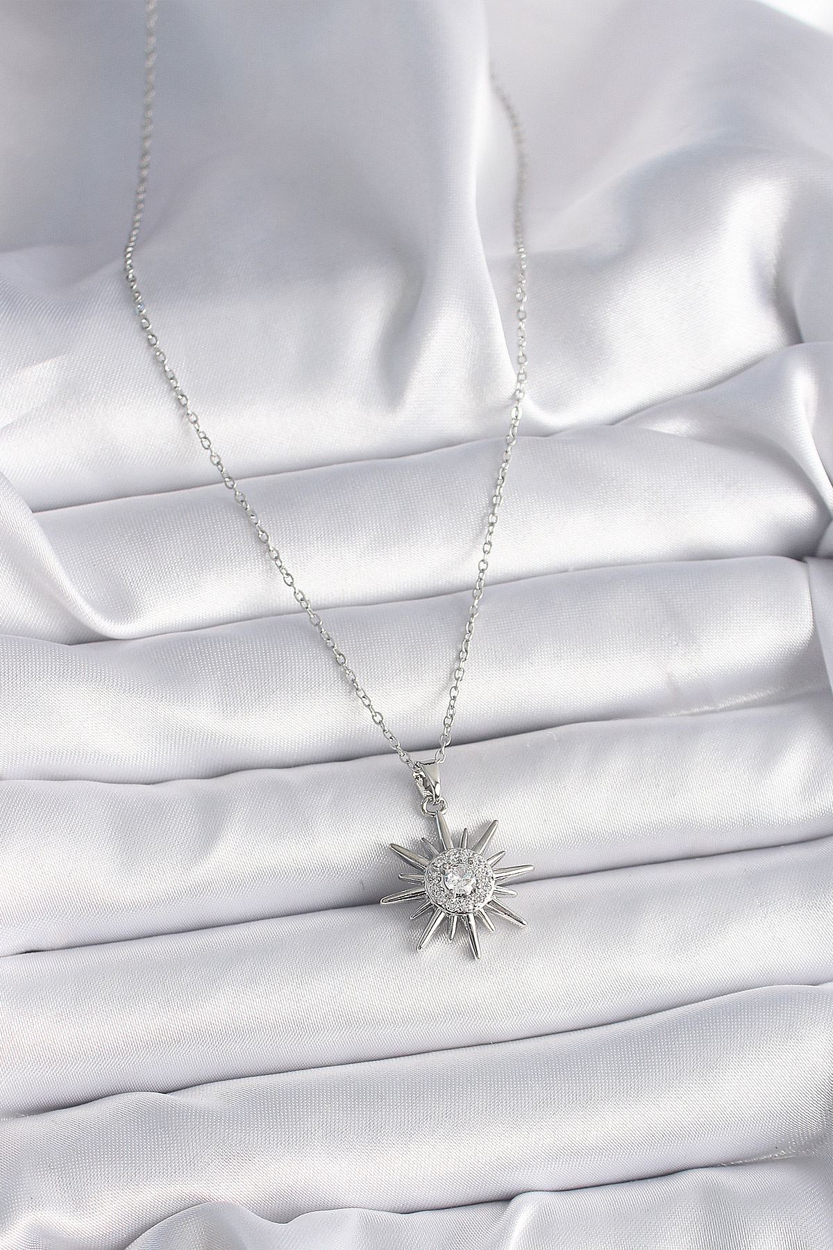 316L Çelik Gümüş Renk Zincir Zirkon Taşlı Güneş Model Kadın Yüzük - TJ-BKO9562