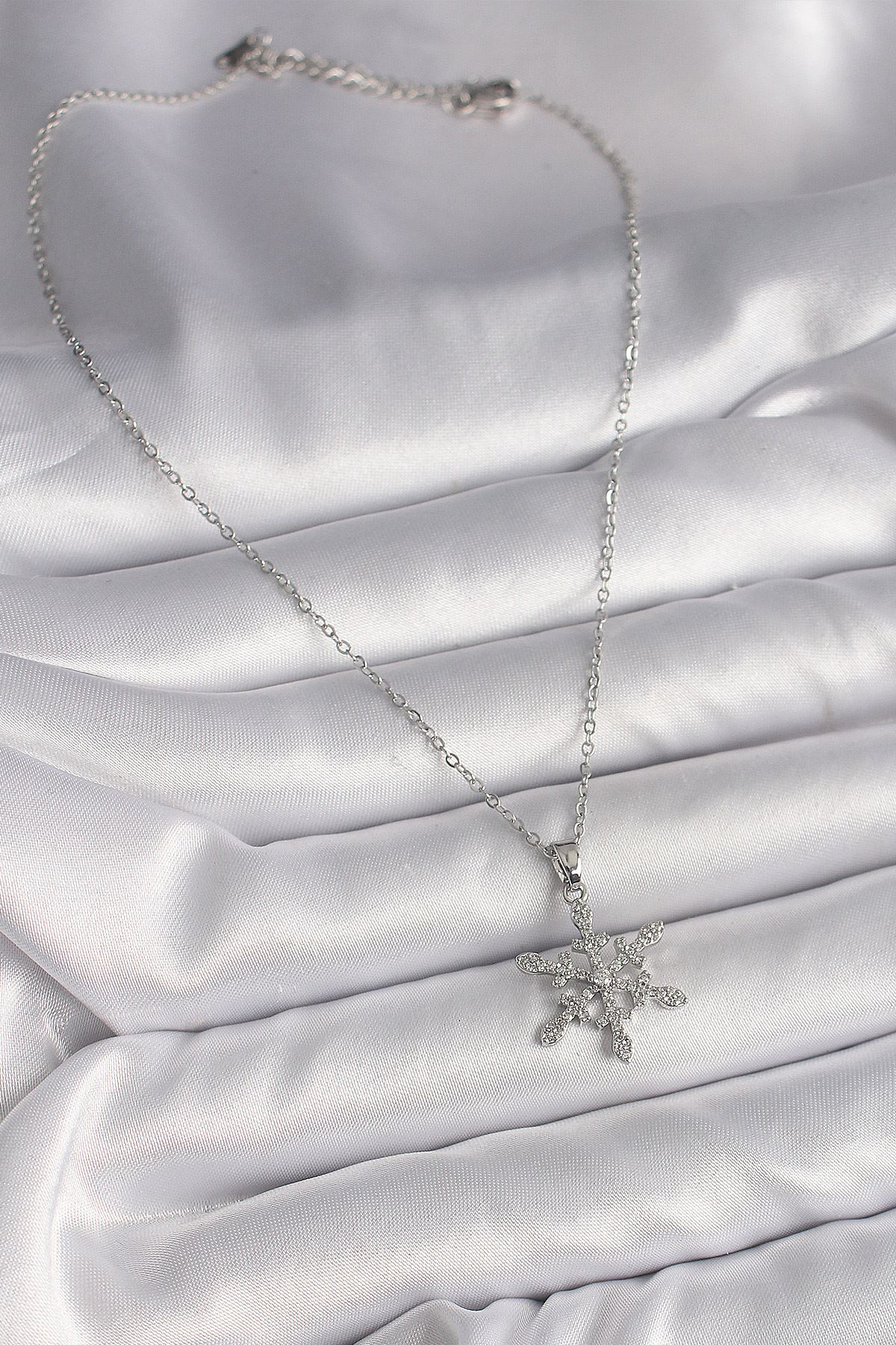 316L Çelik Gümüş Renk Zincir Zirkon Taşlı Kar Tanesi Model Kadın Kolye - TJ-BKO9716
