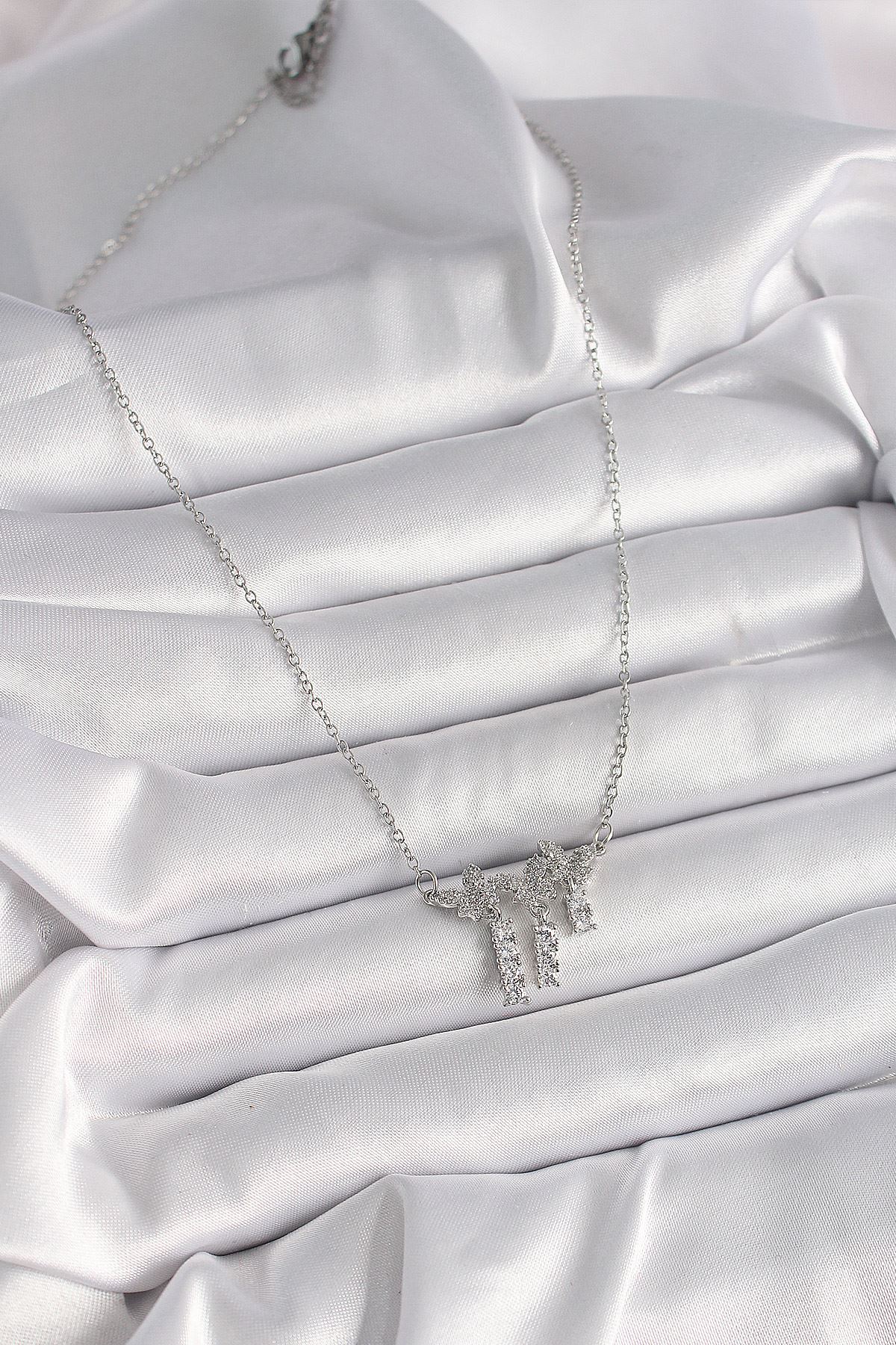 316L Çelik Gümüş Renk Zincir Zirkon Taşlı Kelebek Model Sallantı Detay Kadın Kolye - TJ-BKO9653