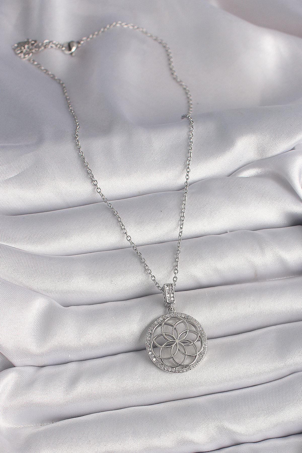 316L Çelik Gümüş Renk Zincir Zirkon Taşlı Lotus Model Kadın Kolye - TJ-BKO9731