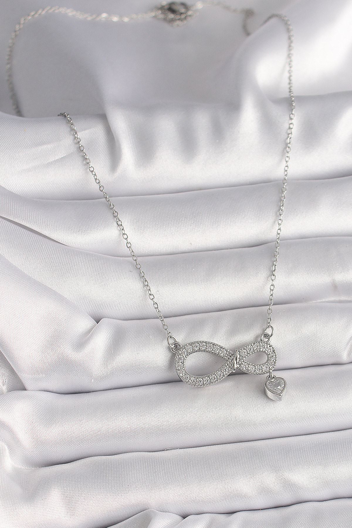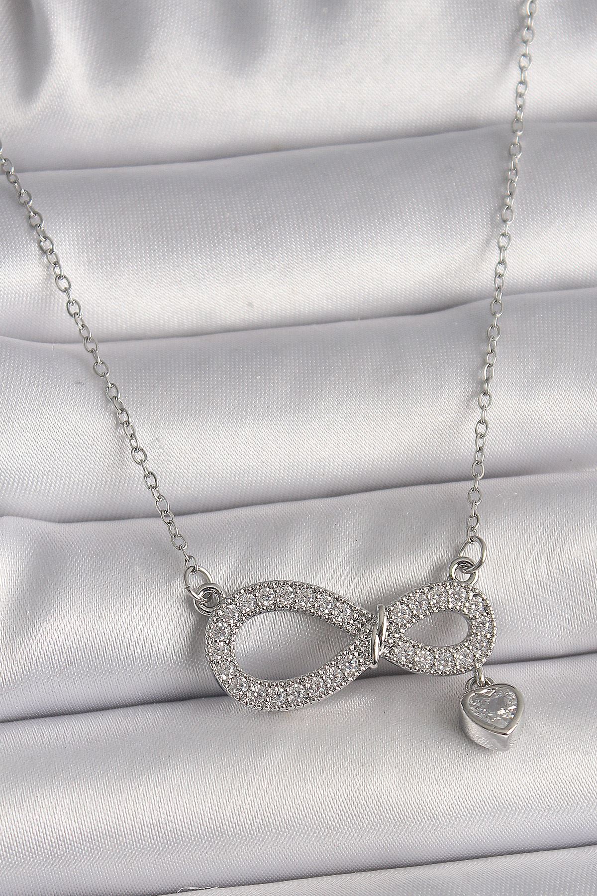 316L Çelik Gümüş Renk Zincir Zirkon Taşlı Sonsuzluk Model Taşlı Kalp Detay Kadın Kolye - TJ-BKO9801