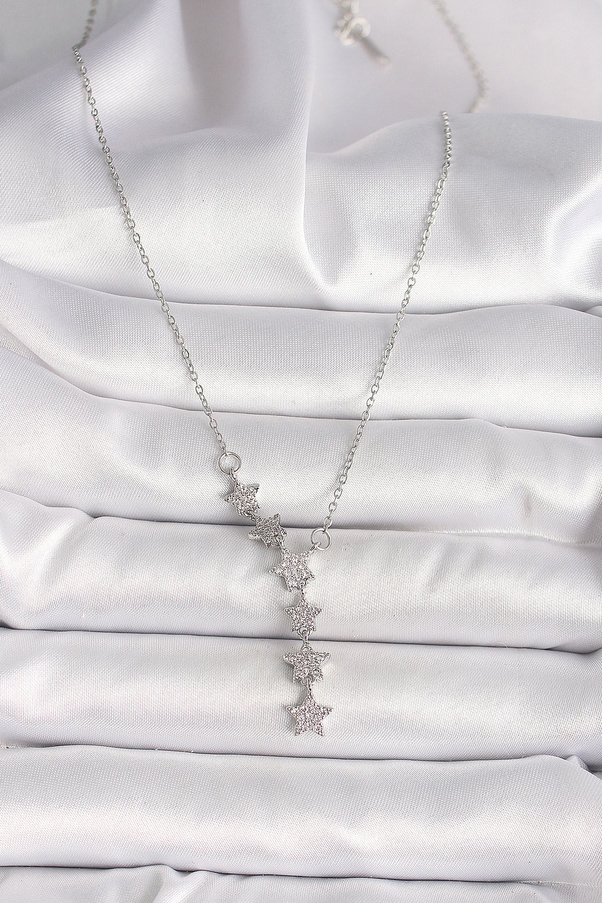 316L Çelik Gümüş Renk Zincir Zirkon Taşlı Yıldız Model Kadın Kolye - TJ-BKO9904