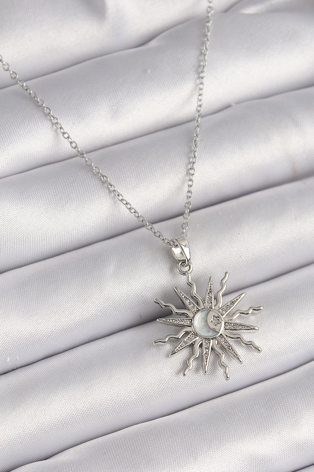 316L Çelik Gümüş Renk Zincir Zirkon Taşlı Yıldız Model Sedefli Ay İşleme Detay Kadın Kolye - TJ-BKO9631