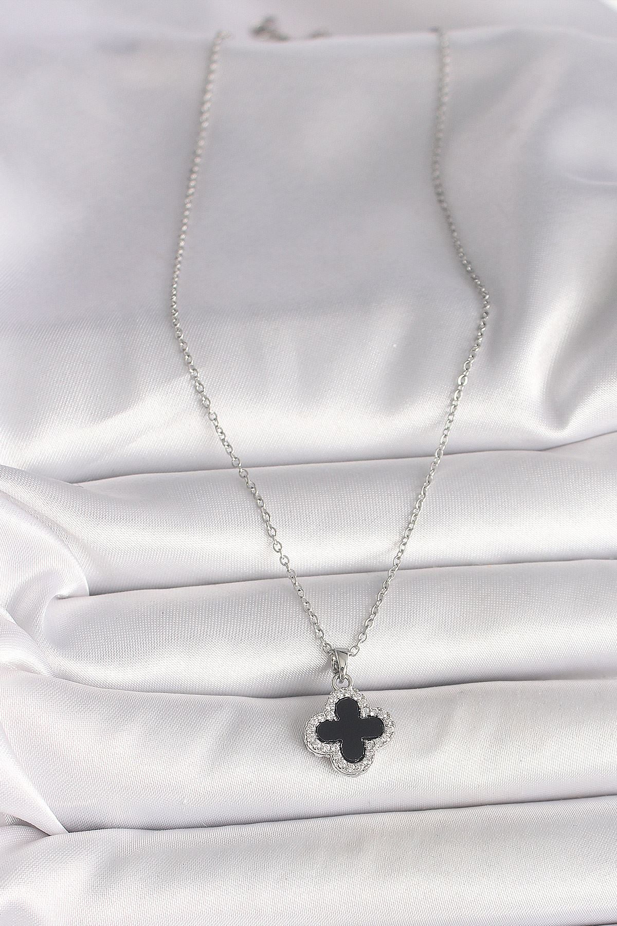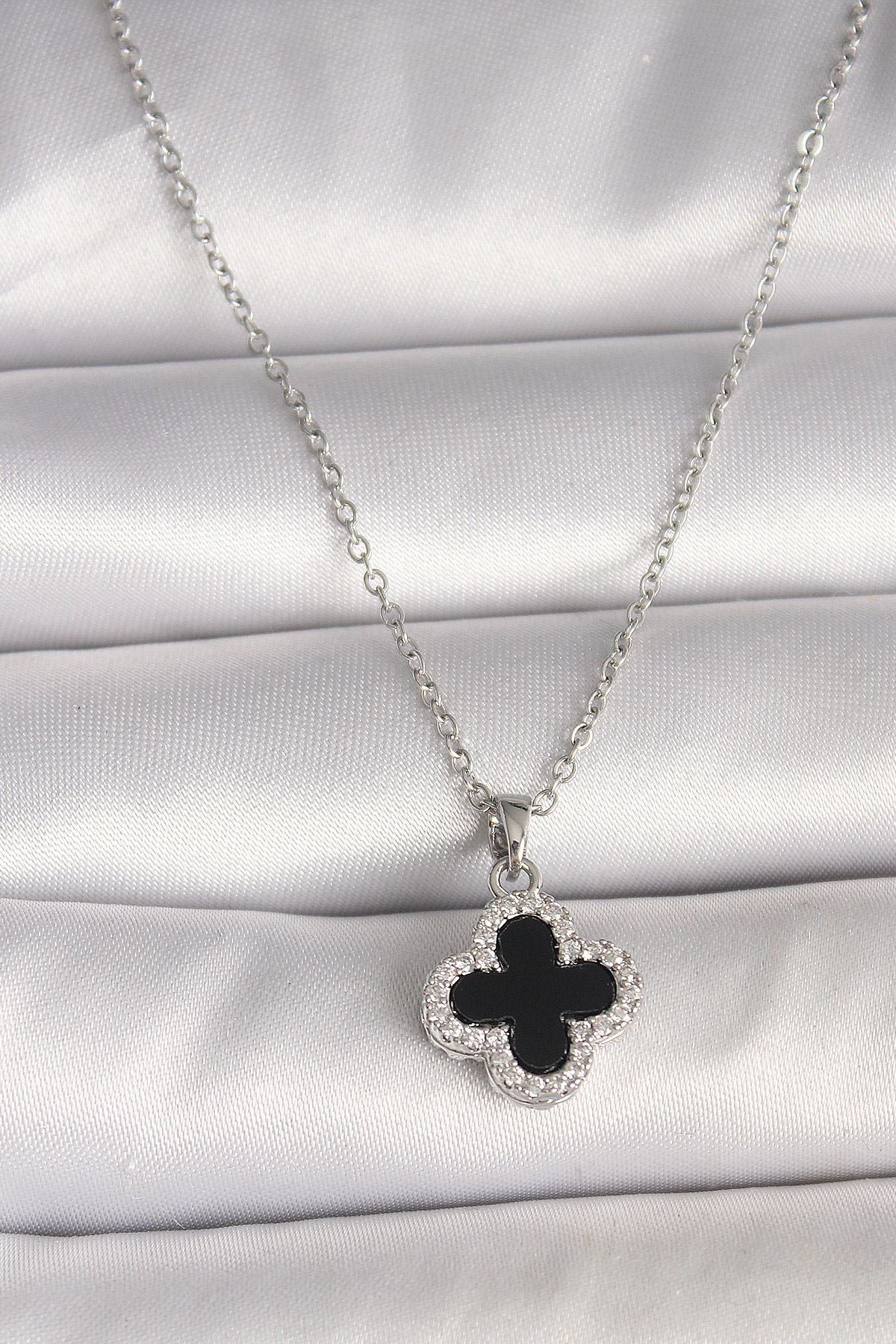 316L Çelik Gümüş Renk Zincir Zirkon Taşlı Yonca Model Kadın Kolye - TJ-BKO9991