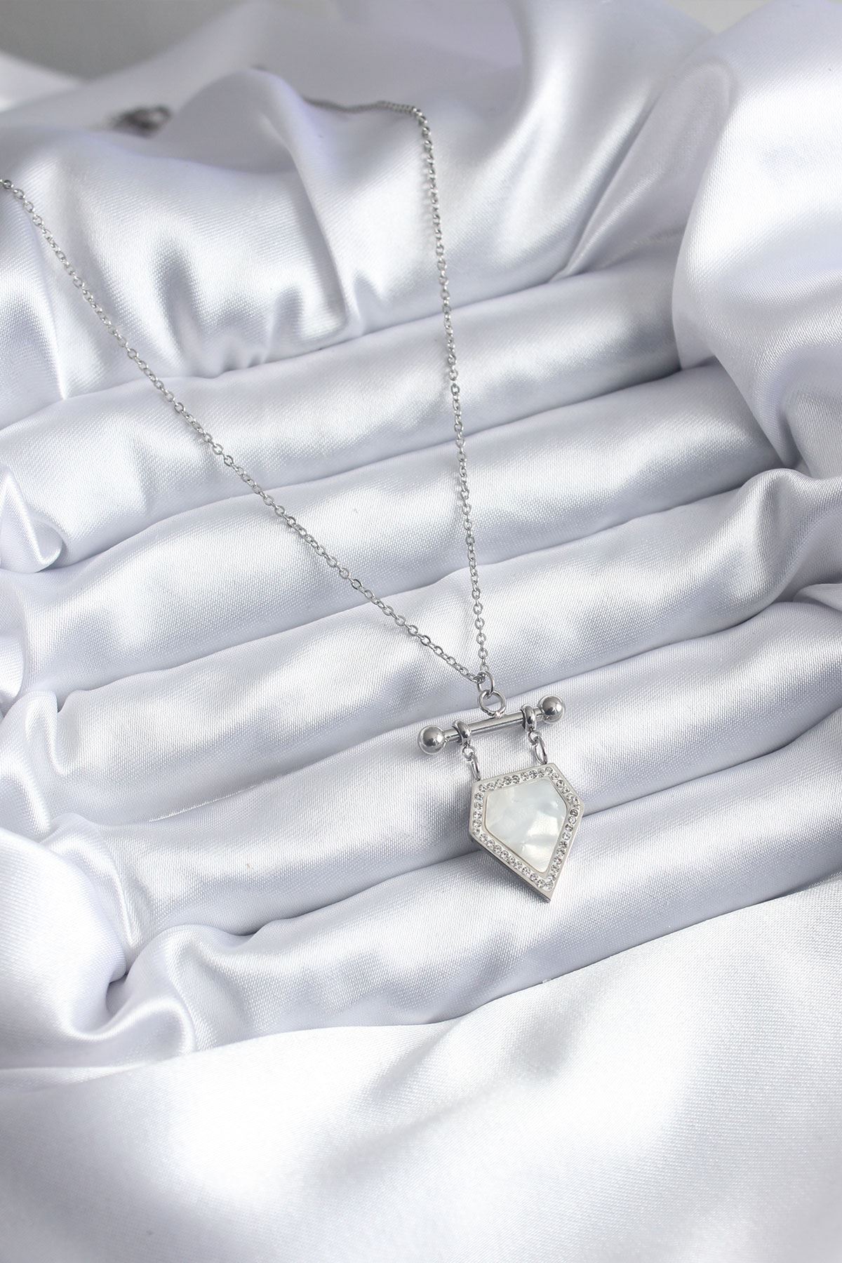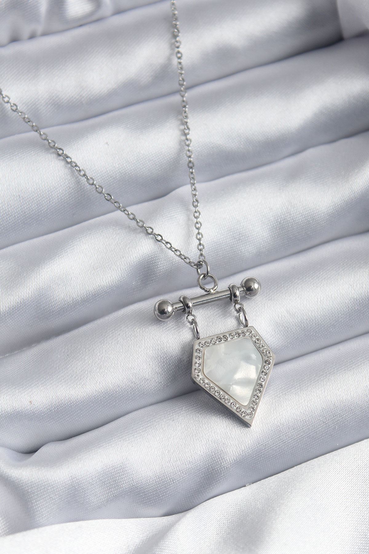 316L Çelik Gümüş Renk Zirkon Taş Detay Kadın Kolye - TJ-BKO7896