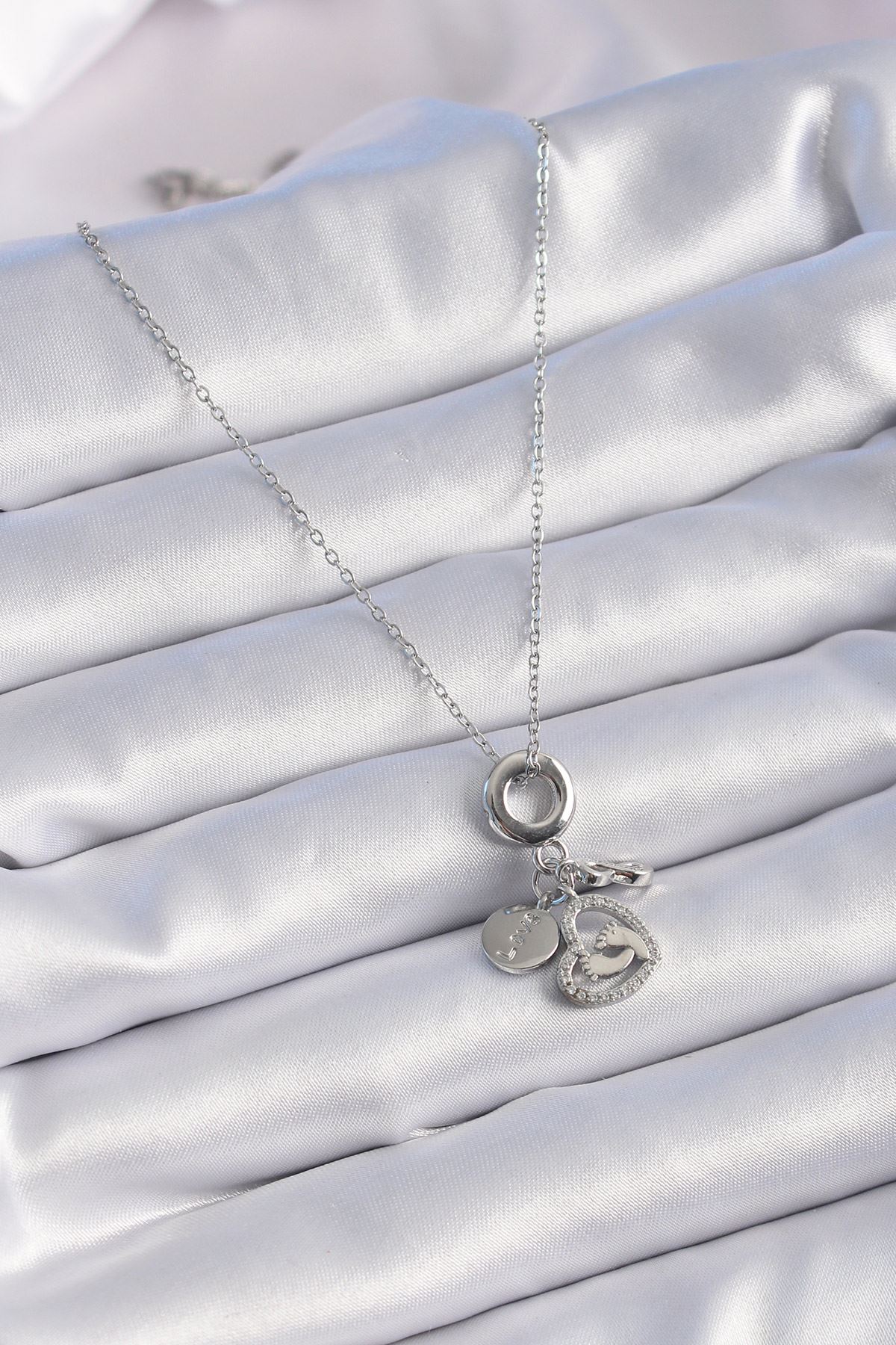 316L Çelik Gümüş Renk Zirkon Taş Detay Kalp Model Charm Kadın Kolye - TJ-BKO9305