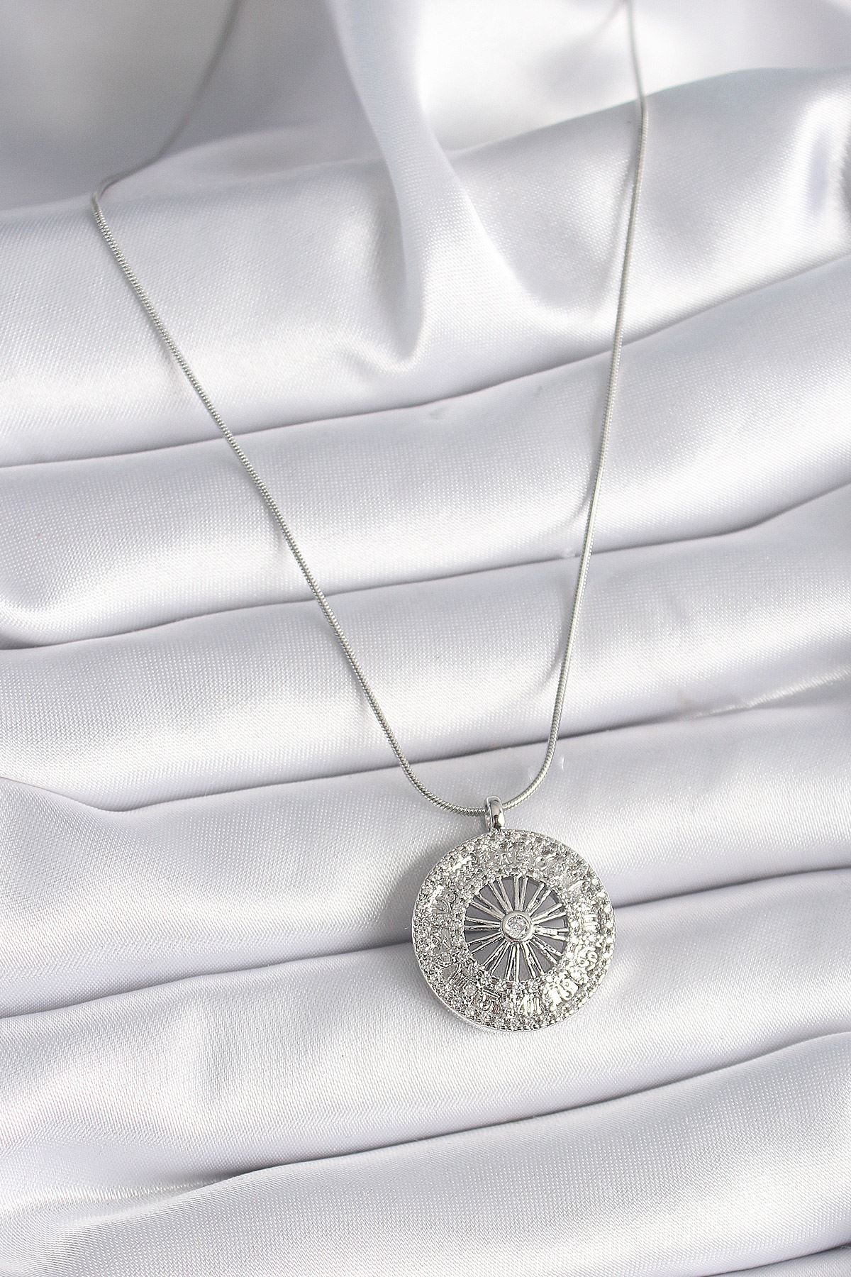 316L Çelik Gümüş Renk Zirkon Taşlı 12 Burç Madalyon Model Kadın Kolye - TJ-BKO9541