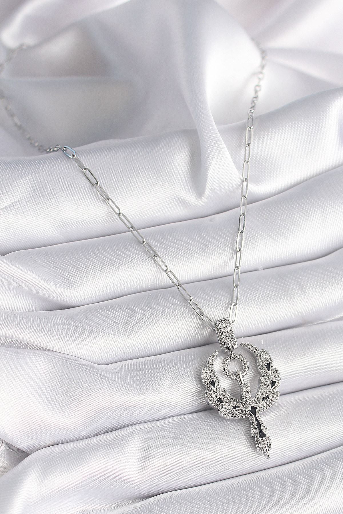 316L Çelik Gümüş Renk Zirkon Taşlı Anka Kuşu Model Kadın Kolye - TJ-BKO9527