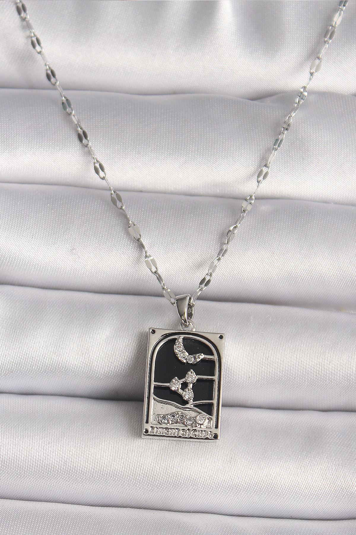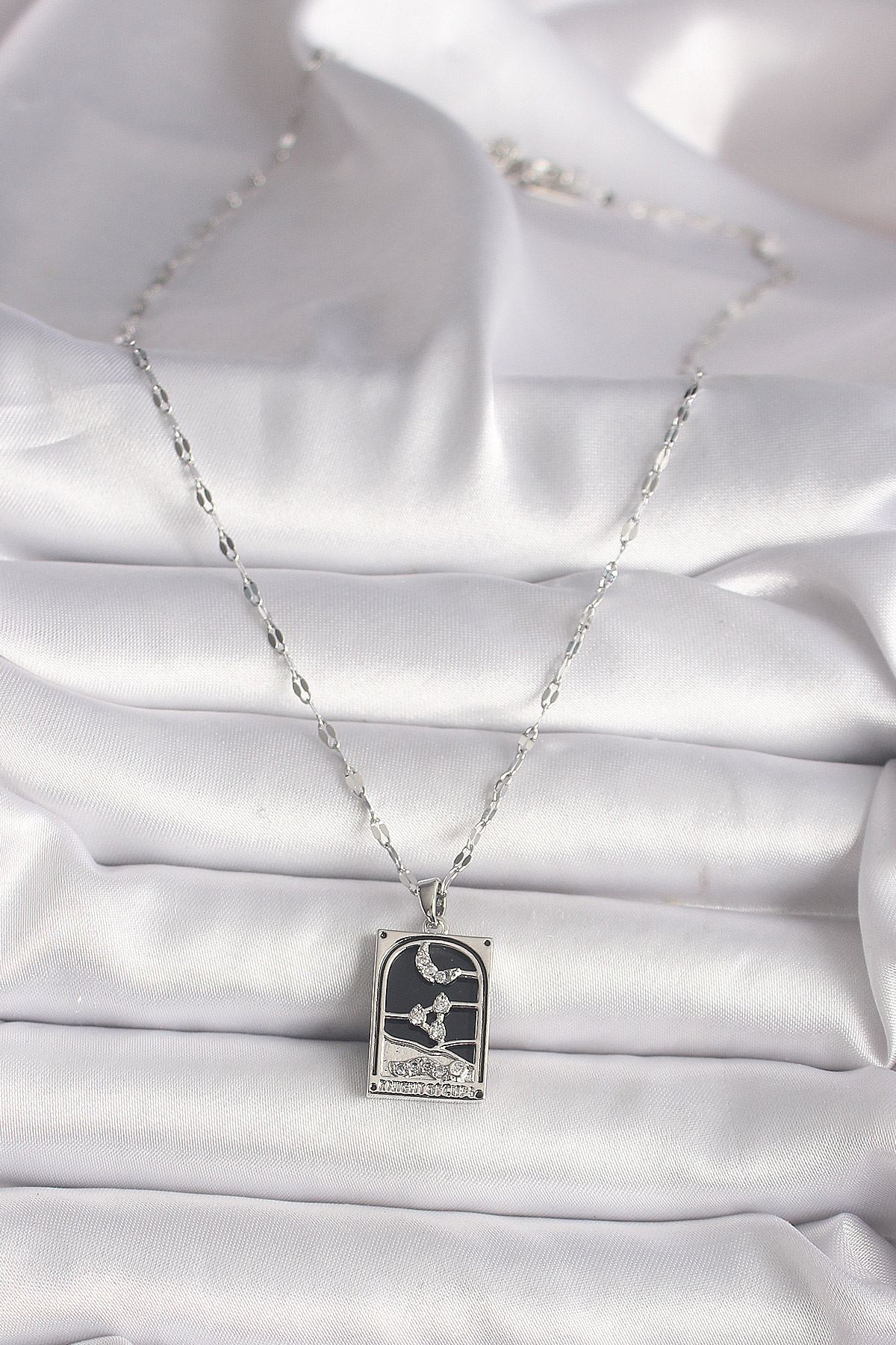 316L Çelik Gümüş Renk Zirkon Taşlı Ay Figürlü Taror Model Kadın Kolye - TJ-BKO9685