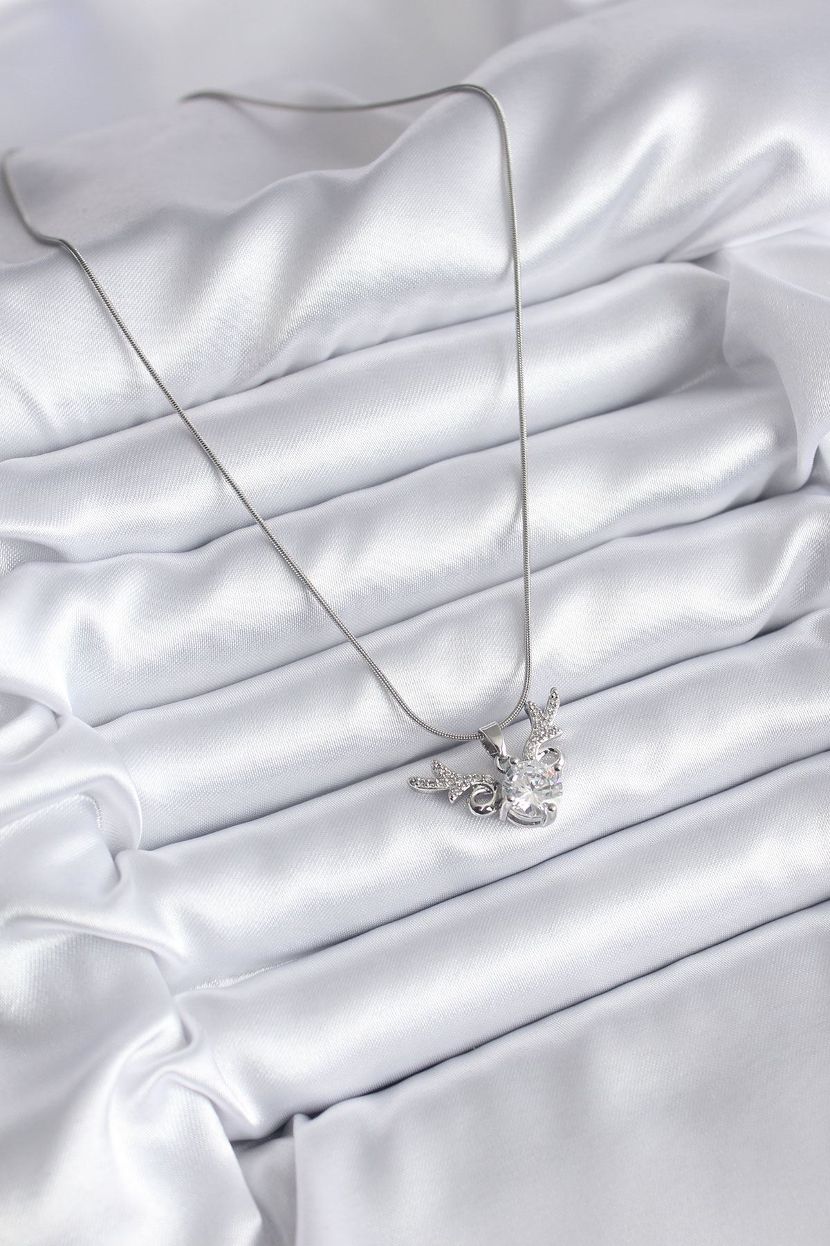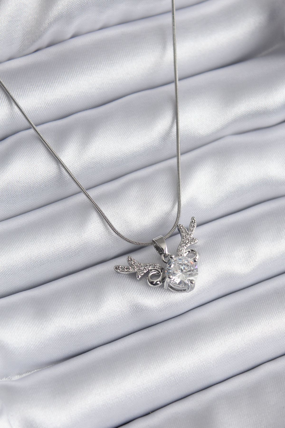 316L Çelik Gümüş Renk Zirkon Taşlı Boynuz Model Kadın Kolye - TJ-BKO8133