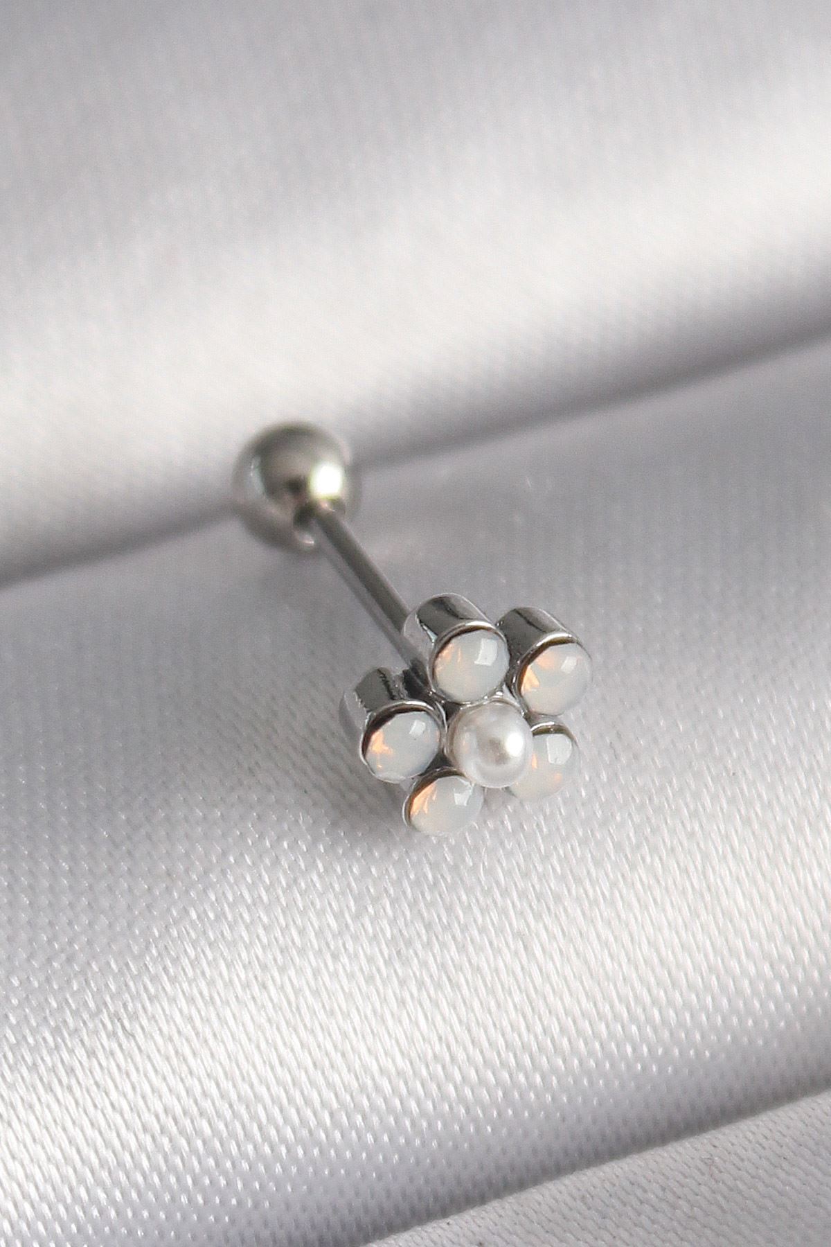 316L Çelik Gümüş Renk Zirkon Taşlı Çiçek Model Tragus Piercing - TJ-PR1283