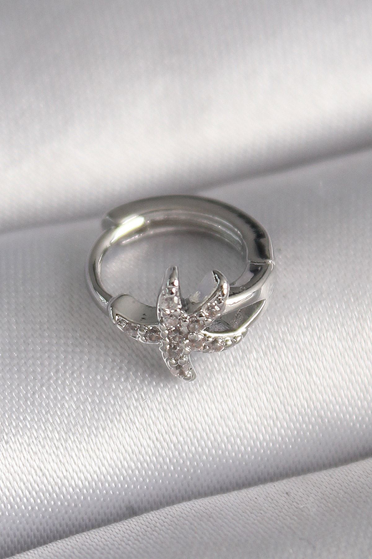 316L Çelik Gümüş Renk Zirkon Taşlı Deniz Yıldızı Model Tragus Piercing - TJ-PR1319