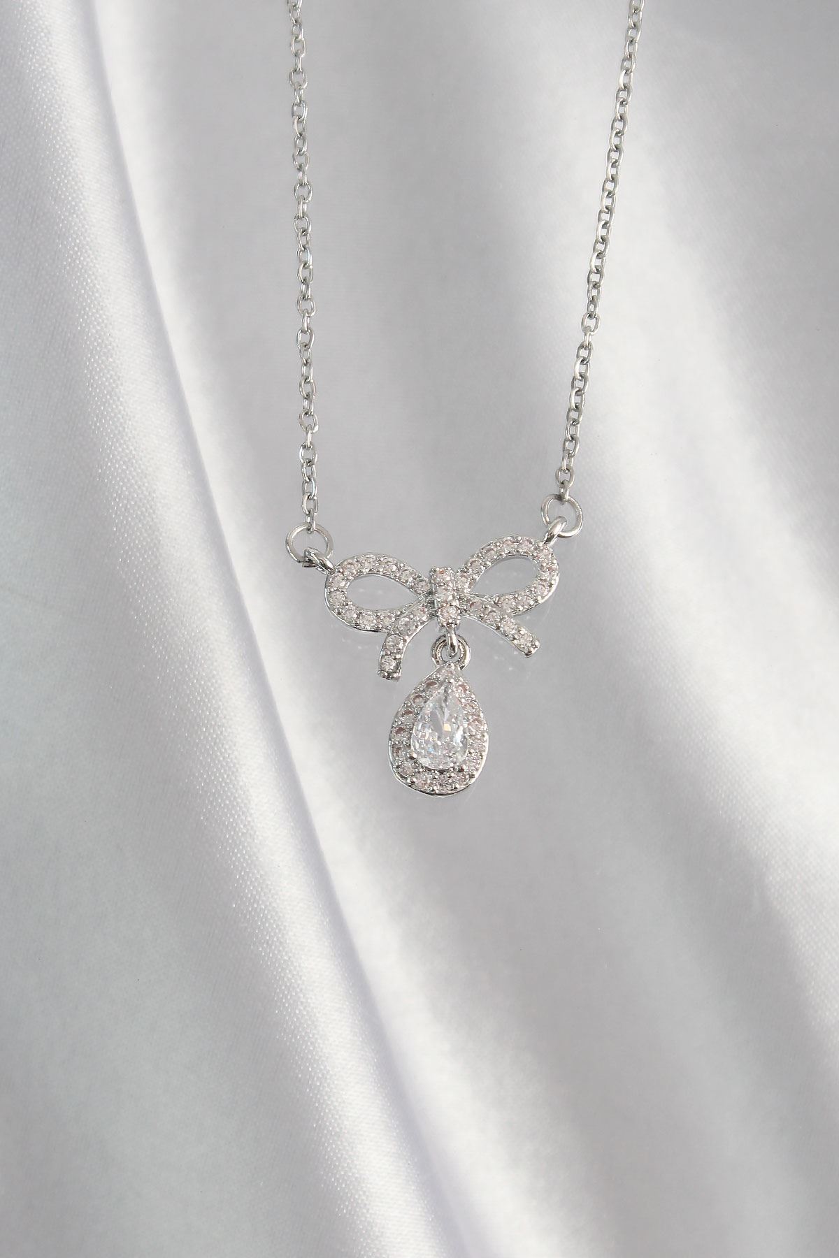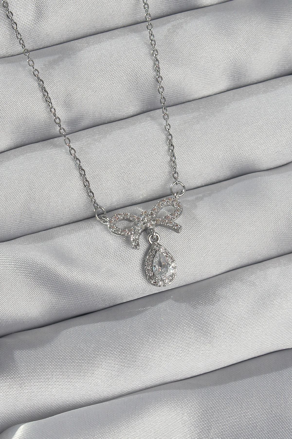 316L Çelik Gümüş Renk Zirkon Taşlı Fiyonk Detay Damla Kolye - TJ-BKO8922